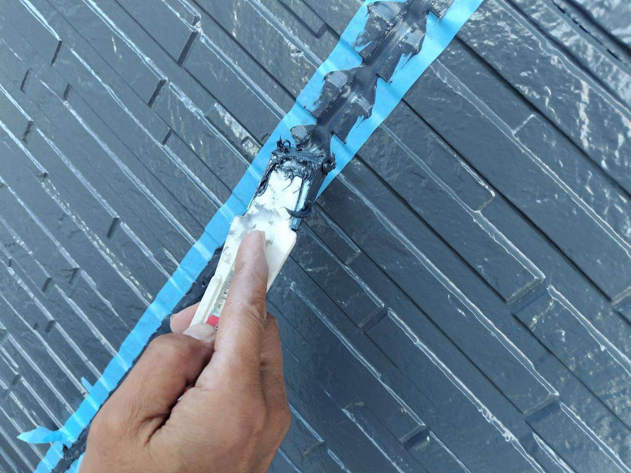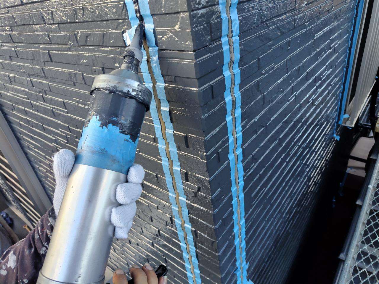 O様邸の昨日の作業は、コーキング(シーリング)の打替え充填作業を行っていました。