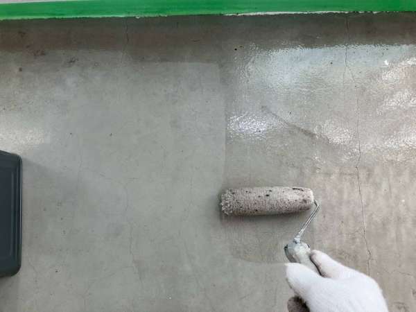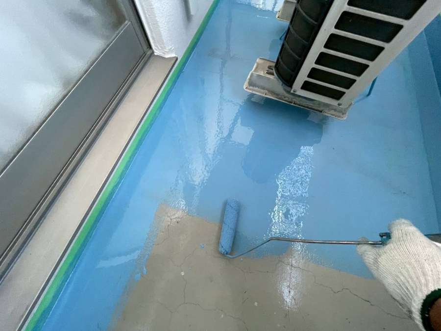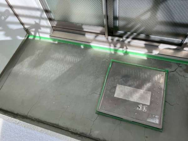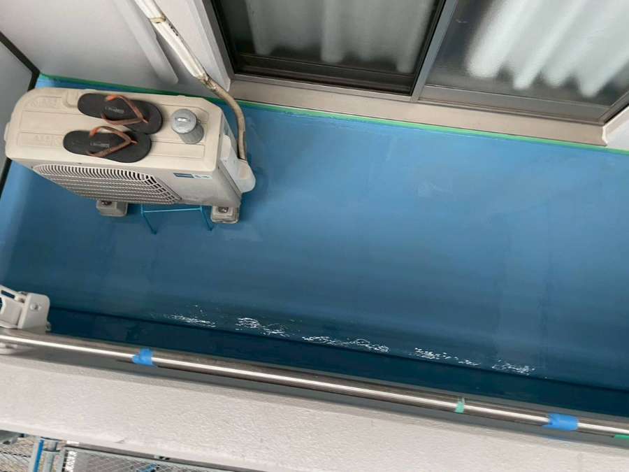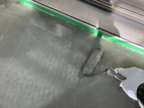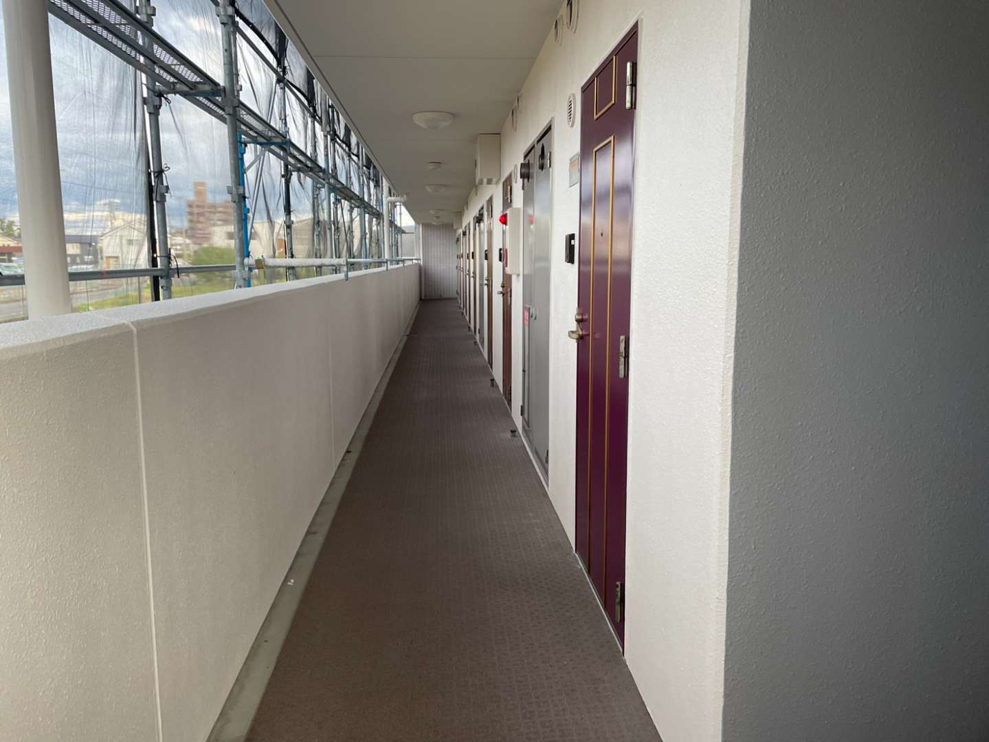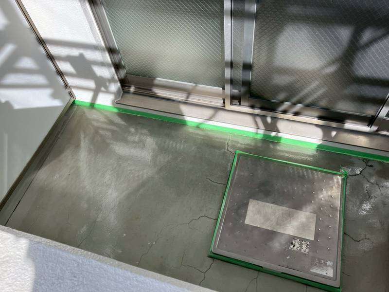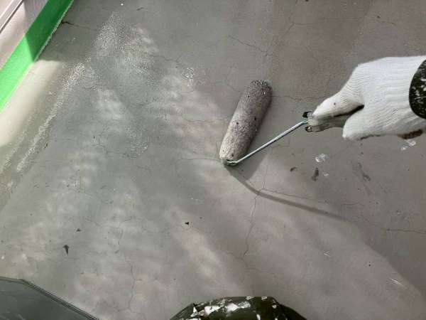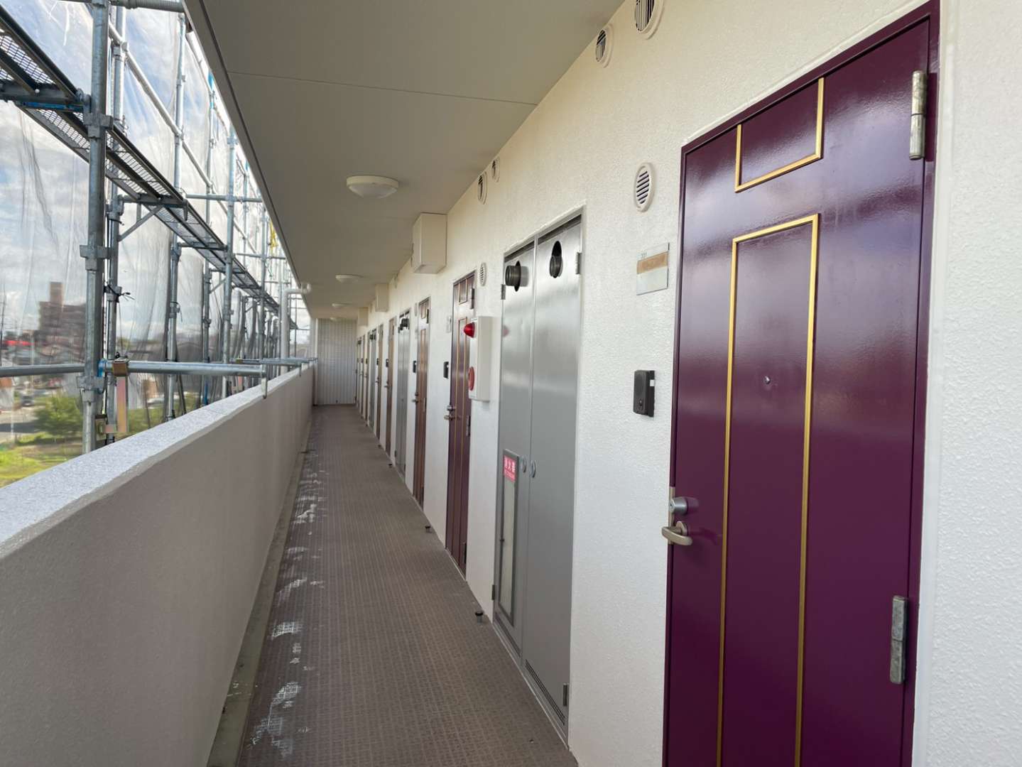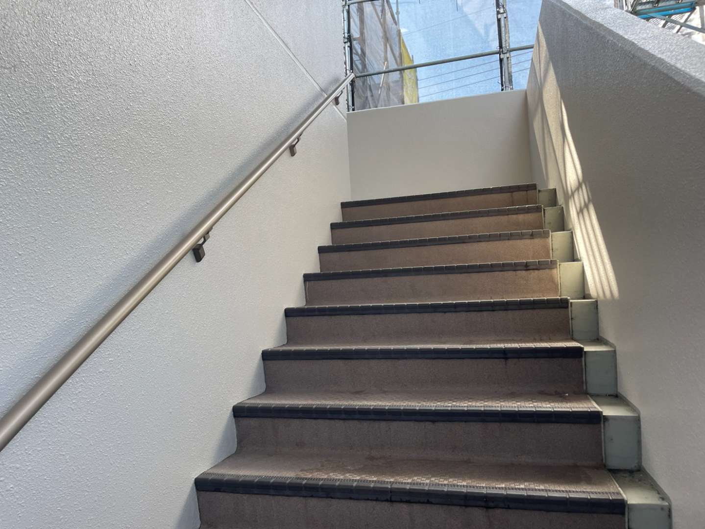 Kマンション様の作業は、2Fベランダのウレタン樹脂1層目塗装・1Fベランダのプライマー塗装まで進んでいます。階段・通路の塗装作業は、完了しました。