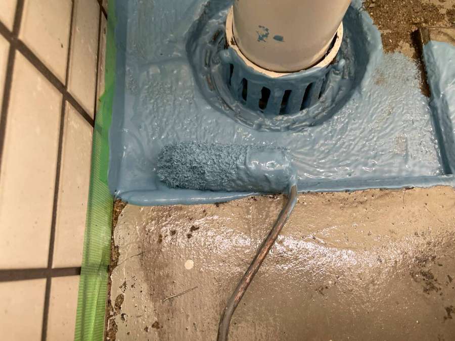 今日の作業は、2F・1Fの防水作業を予定しています。