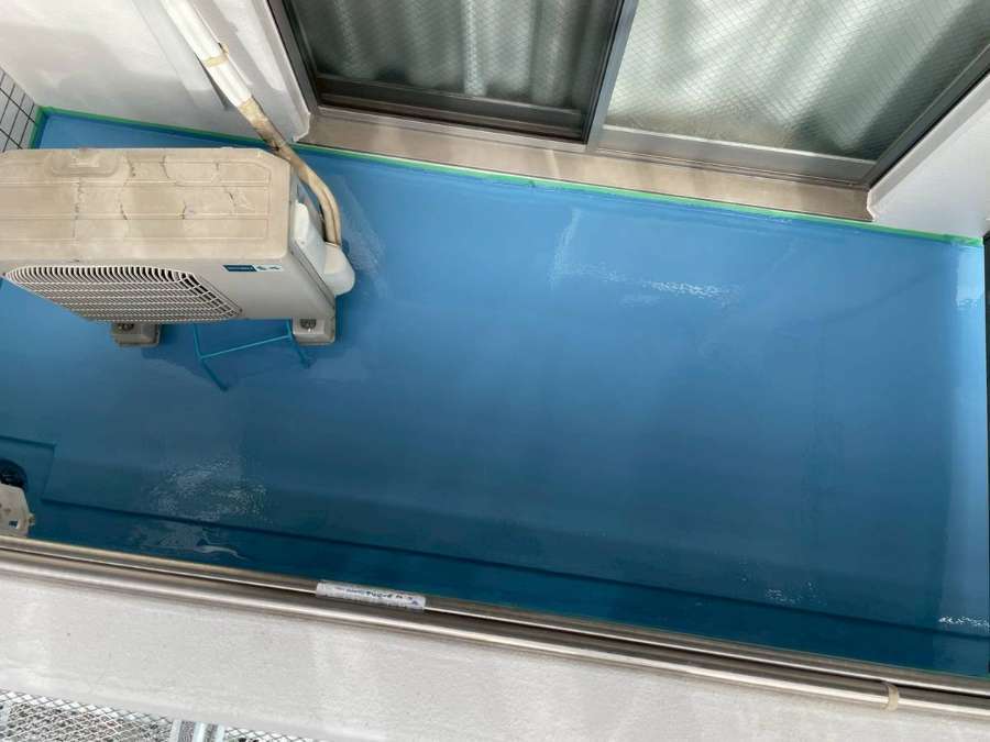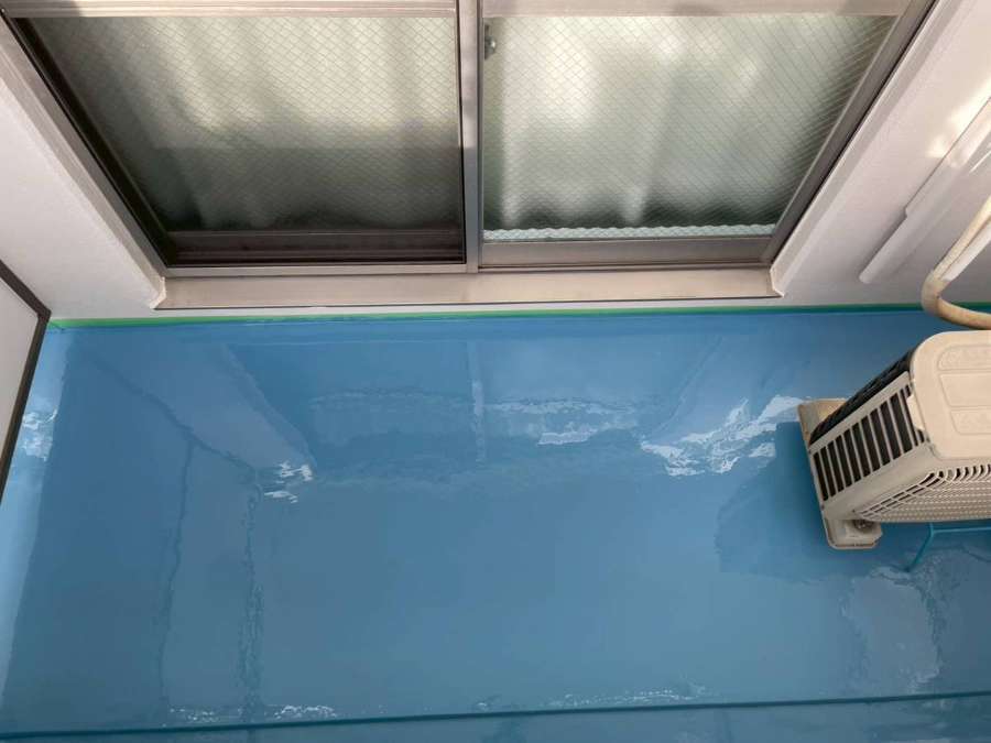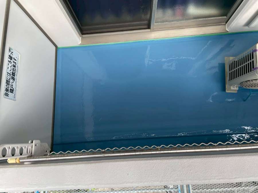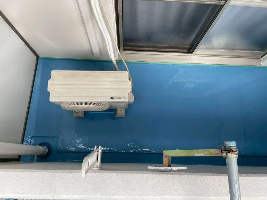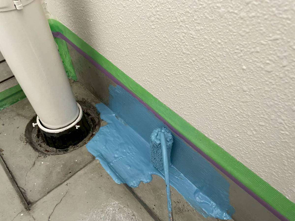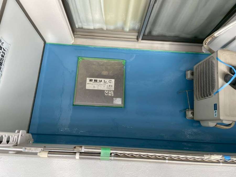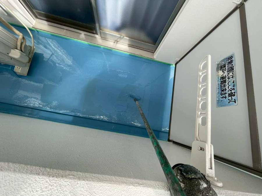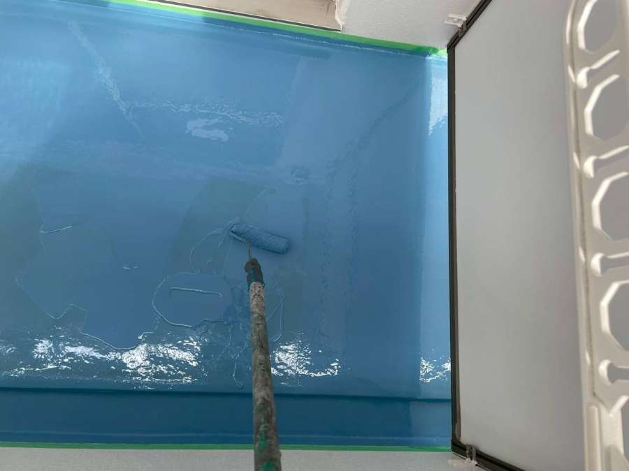 今日の作業は、引き続き、ベランダの防水作業・その他塗装作業を予定しています。