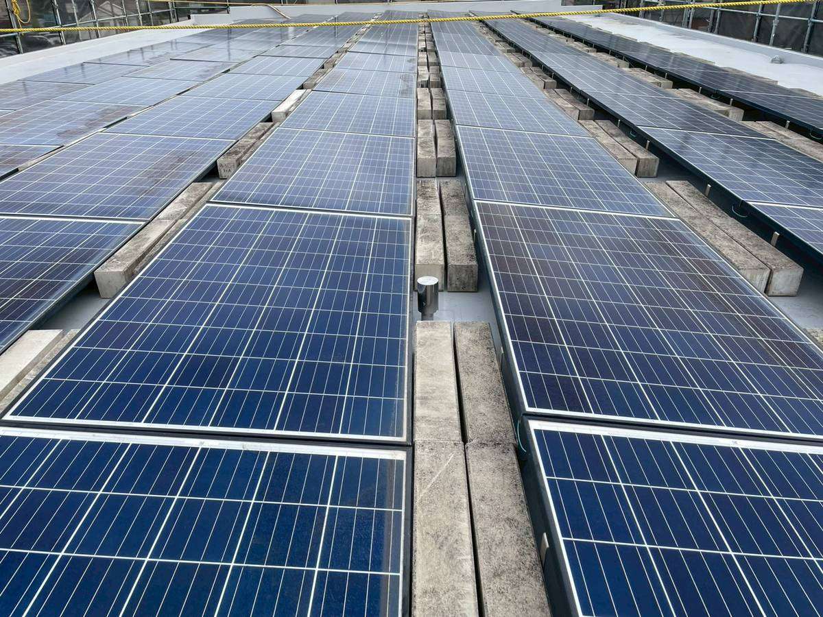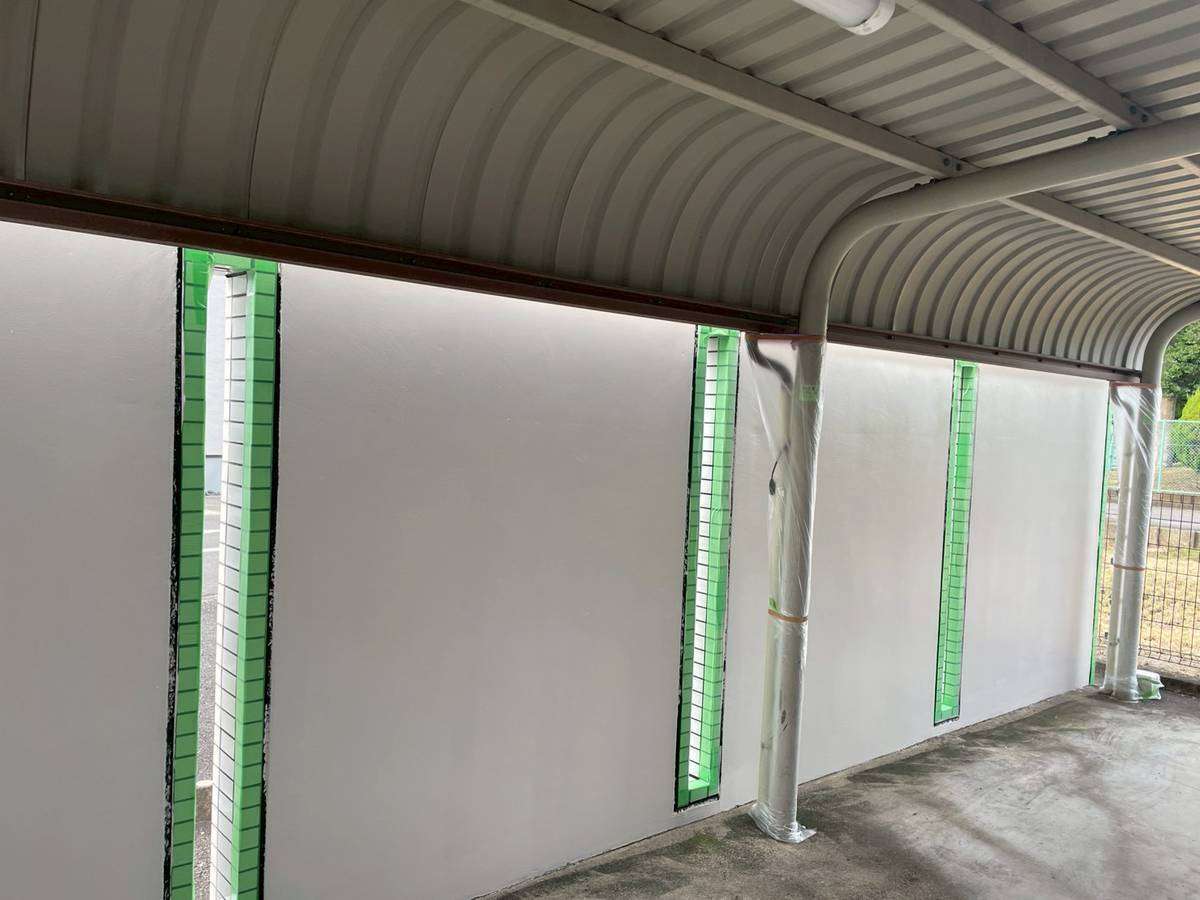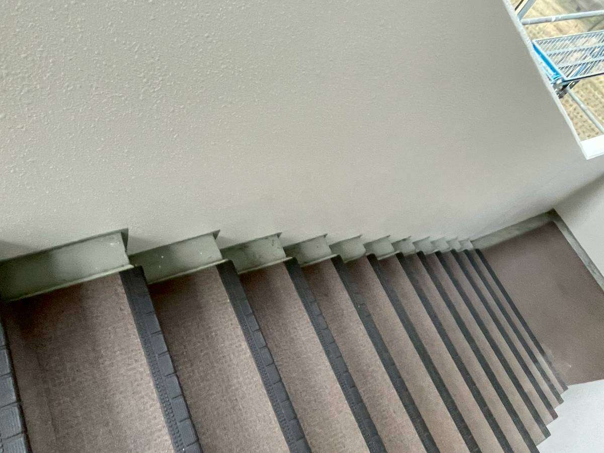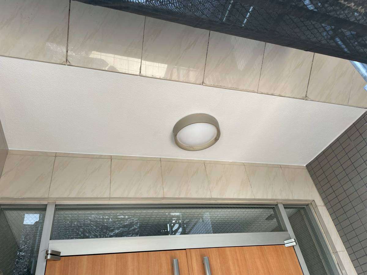 Kマンション様の昨日の作業は、エントランスの軒天塗装作業・駐輪場の壁塗装作業・基礎部軒天塗装作業・階段、通路脇の側溝のトップコート塗装前の養生作業・2Fベランダのウレタン2層目塗装・1Fベランダのウレタン樹脂1層目塗装作業・太陽光パネルの移動・設置作業を行っていました。