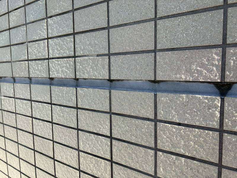 今日の作業は、引き続き、タイル目地のコーキング作業を行っています。