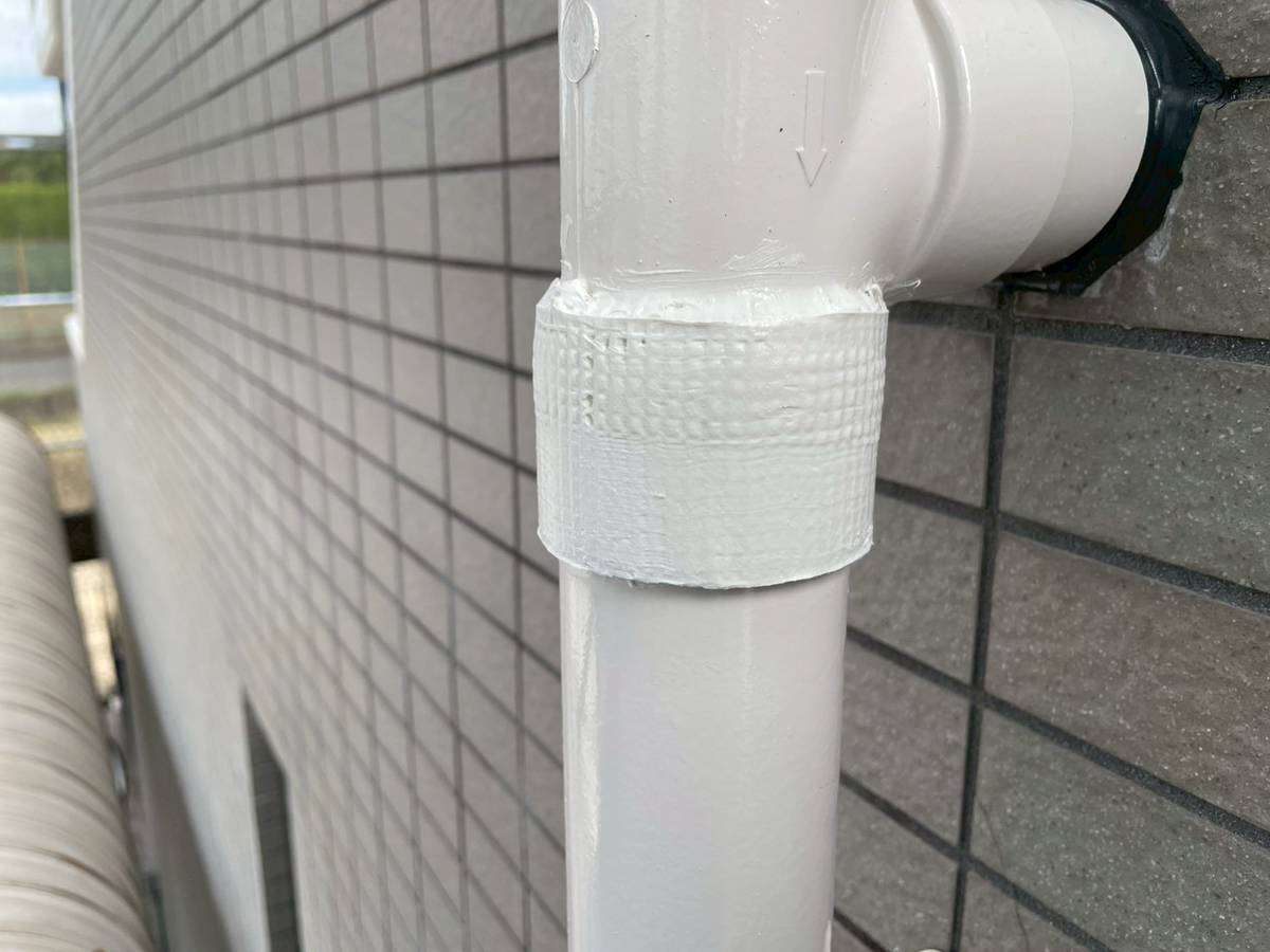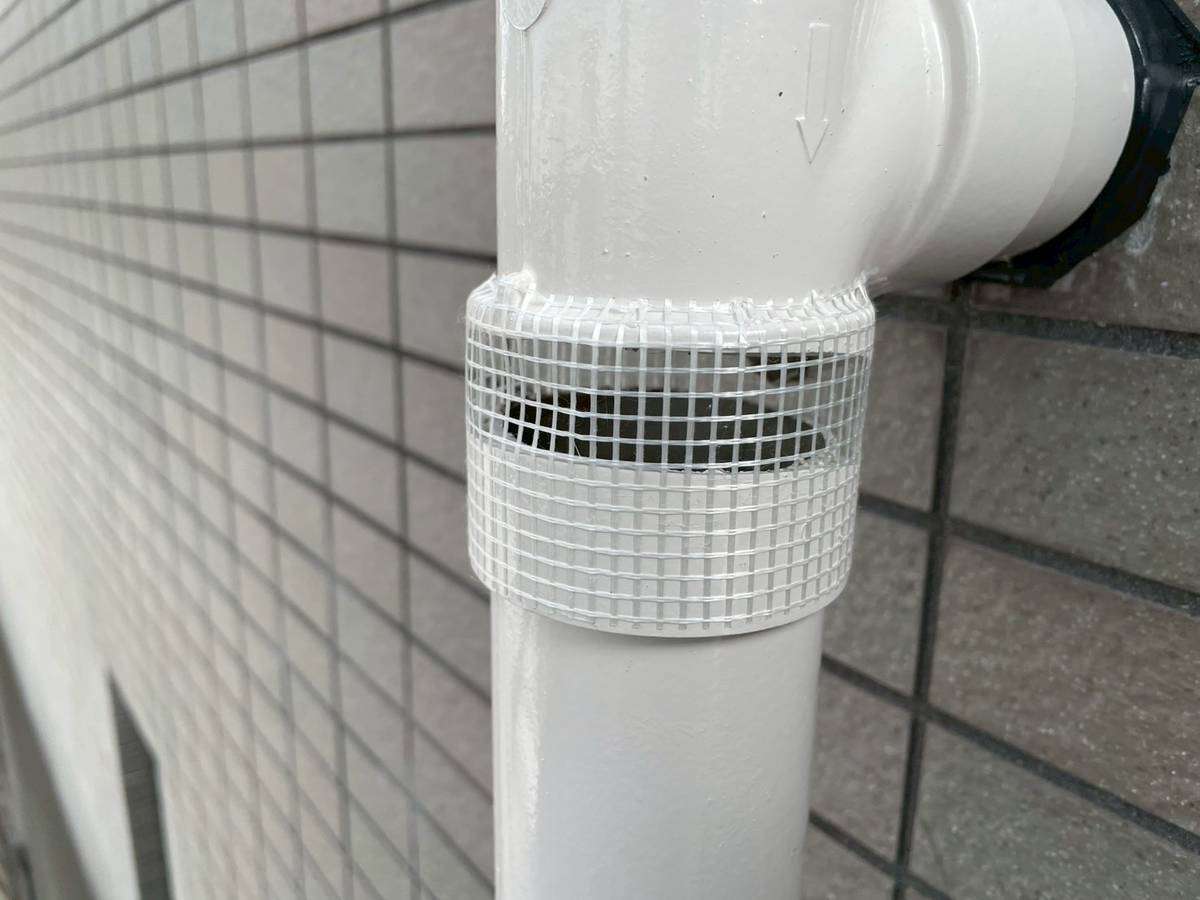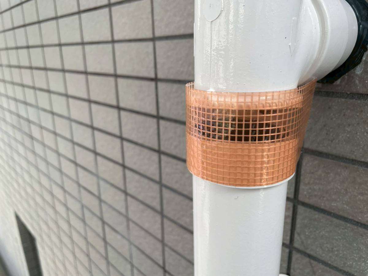 Kマンション様の昨日の作業は、コーキング(シーリング)補修箇所の塗装作業、配管の欠損部補修作業を行っていました。