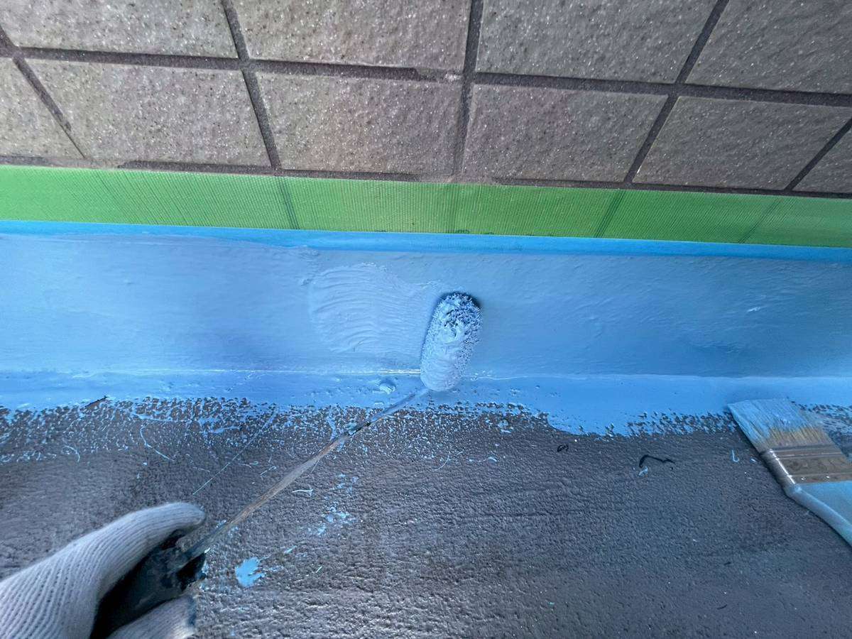 エントランス屋根立上り部ウレタン樹脂塗装作業