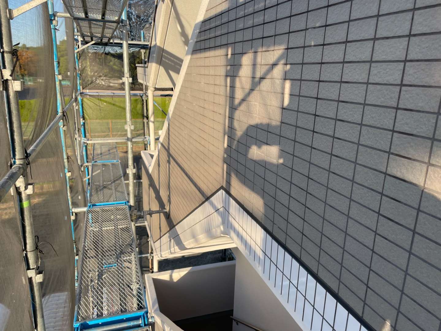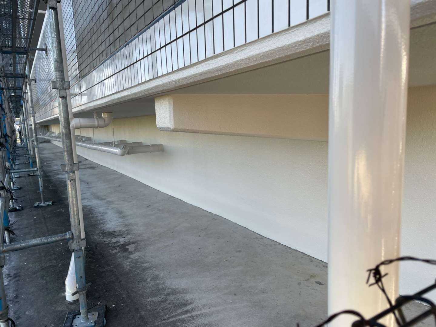 Kマンション様の作業は、塗装部の点検・仮設足場の解体作業が完了しました。