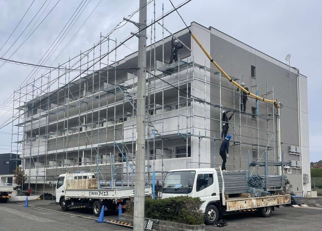 #愛知県#清須市#マンション#改修工事#外壁塗装#防水工事#塗り替え#リフォーム#点検作業#仮設足場#解体#足場#職人#社員#募集#採用