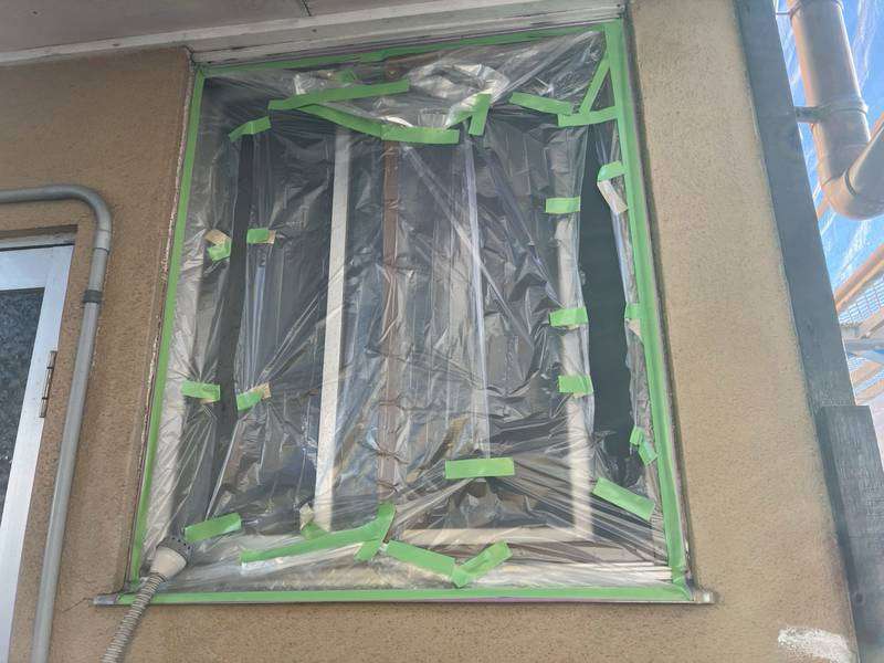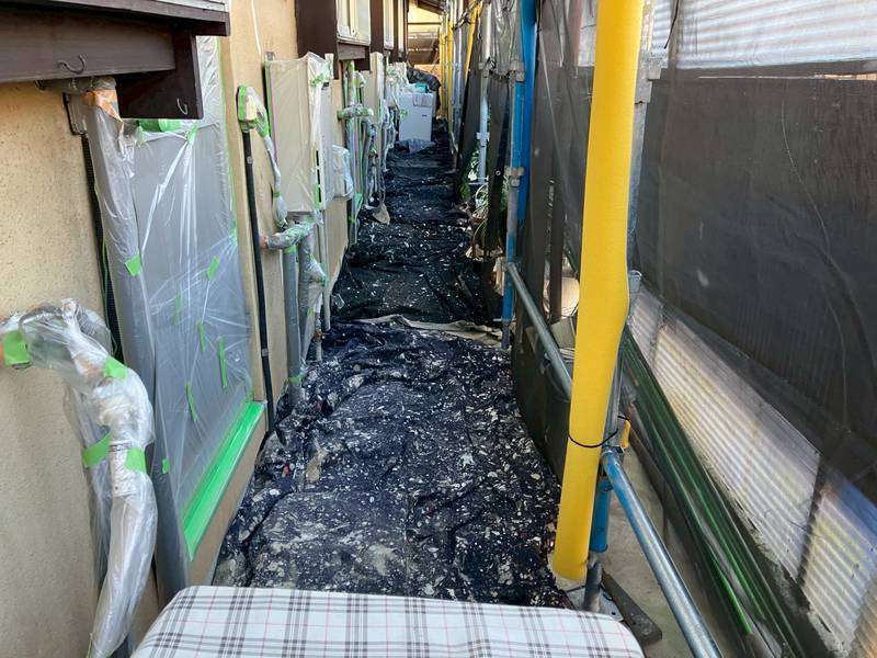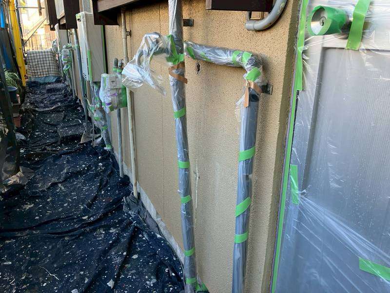 名古屋市名東区のコーポE様の外壁塗装・室内リフォーム工事の作業の進捗状況をアップします。コーポE様の作業は、外壁の劣化部・亀裂部のコーキング補修を行い養生作業まで完了しました。