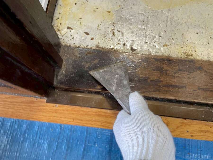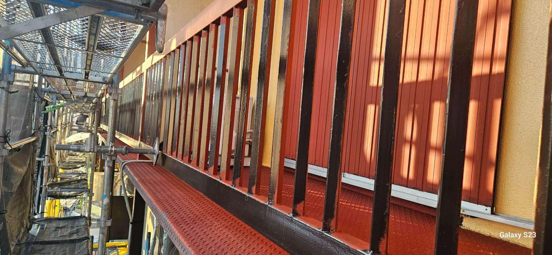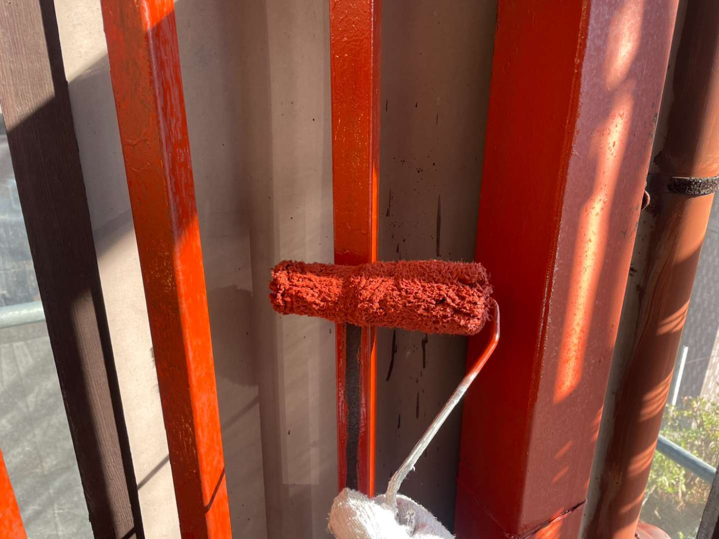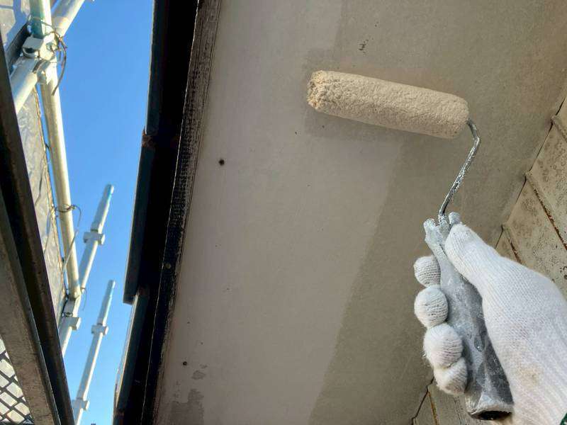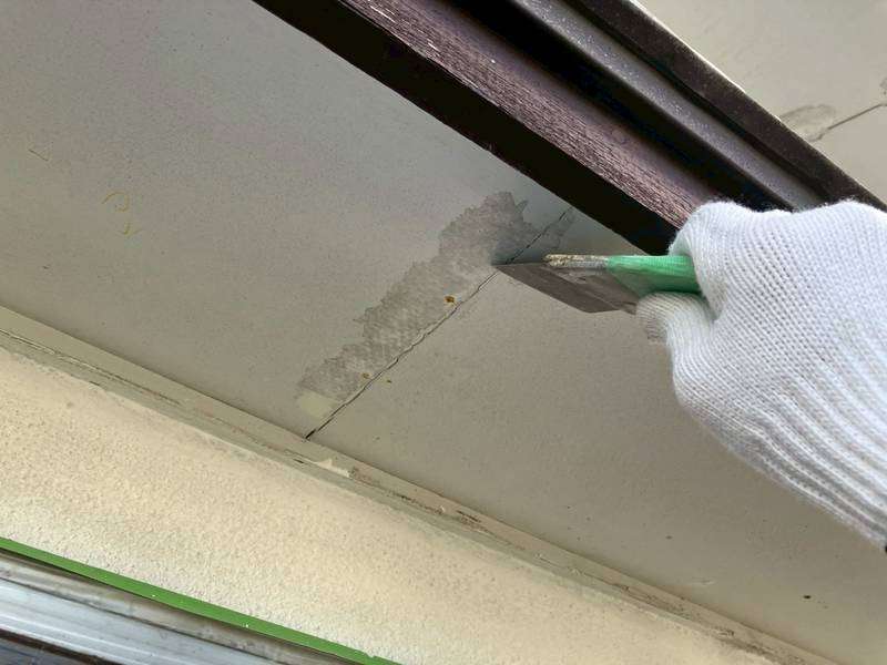 名古屋市名東区のコーポE様の外壁塗装・室内リフォーム工事の昨日の作業内容をアップします!コーポE様の昨日の作業は、2F南面ベランダの付帯部の下塗り(サビ止め)塗装・破風板・鼻隠し板・樋の上塗り1回目塗装、東面・北面・西面の軒天のケレン・シーラー塗装、北面の外壁下塗り塗装、室内木部のケレン・塗装作業を行いました。