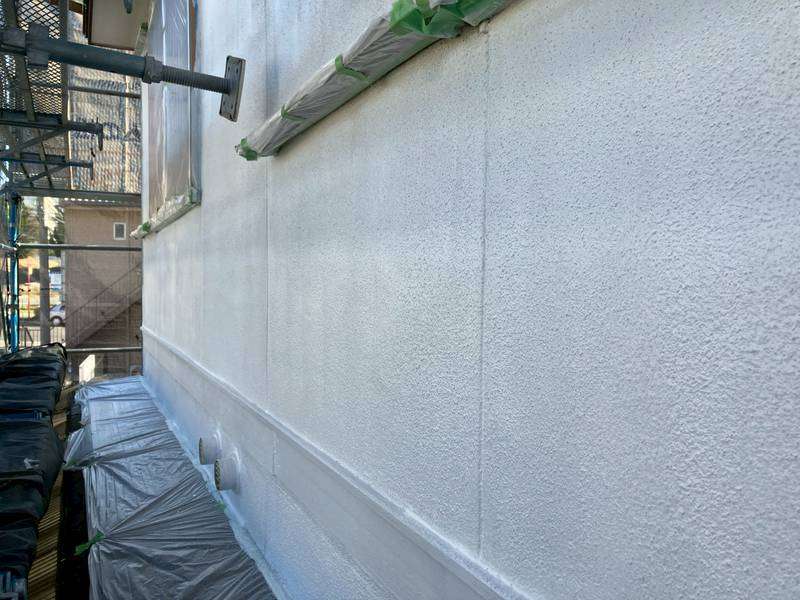 今日の作業は、付帯部塗装・軒天塗装・外壁塗装作業を行っています。