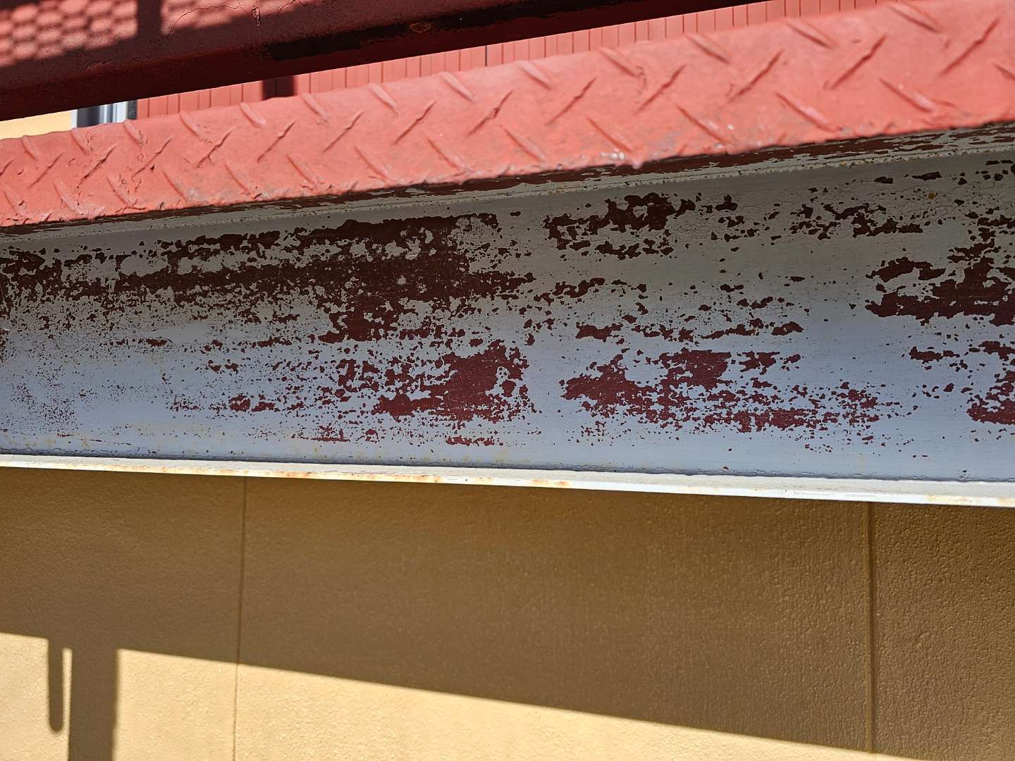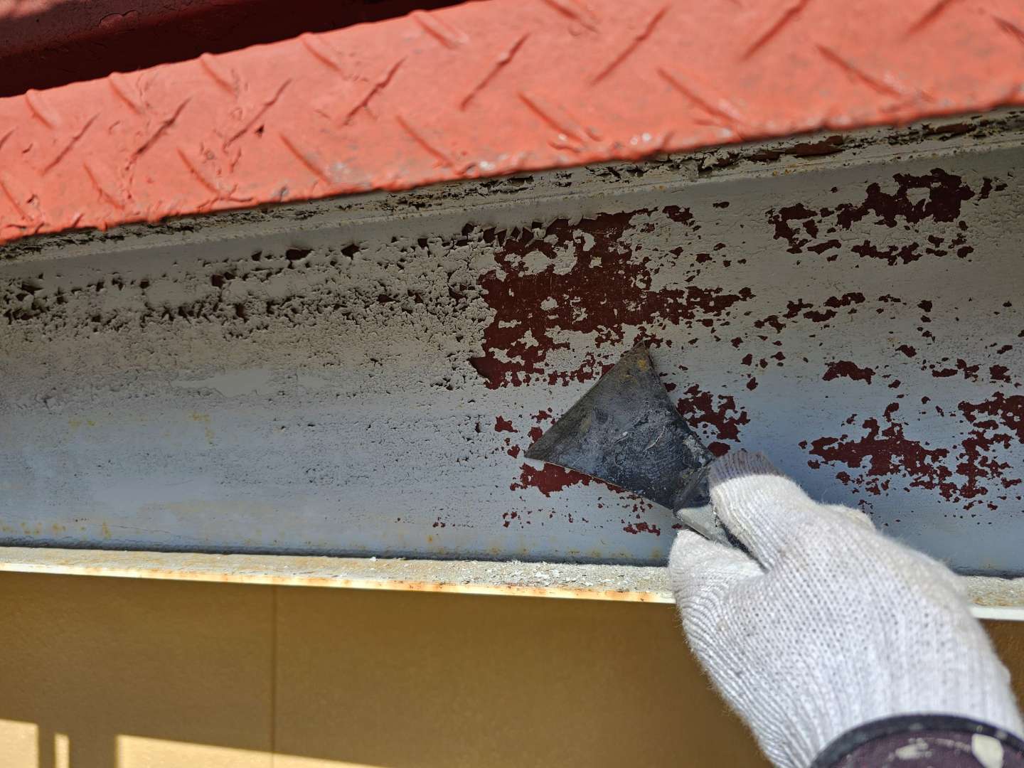 鉄骨部ケレン・下塗り(錆止め)塗装作業