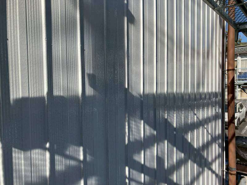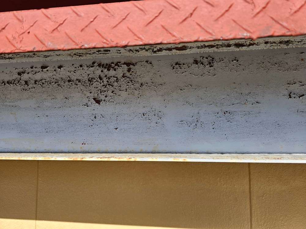 名東区コーポE様の昨日の作業内容は、外壁東西面のケレン・下塗り(錆止め)塗装、破風板・鼻隠し板の上塗り1回目塗装、鉄骨部のケレン・錆止め塗装、屋根漆喰工事の三日月部漆喰材の詰め直し作業を行っています。