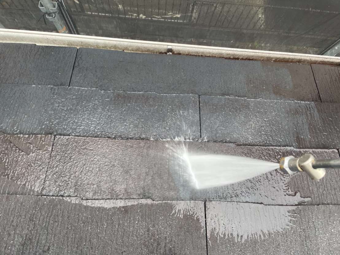 S様邸の昨日の作業は、屋根とフェンスの洗浄作業を行っていました。