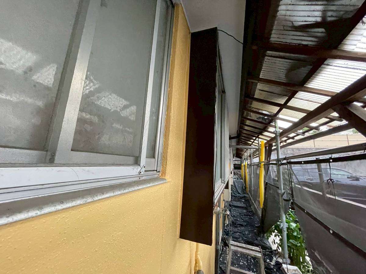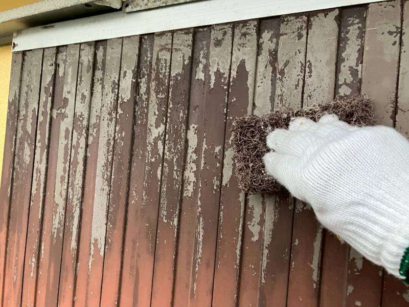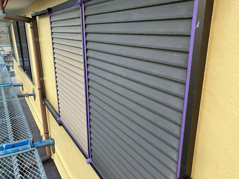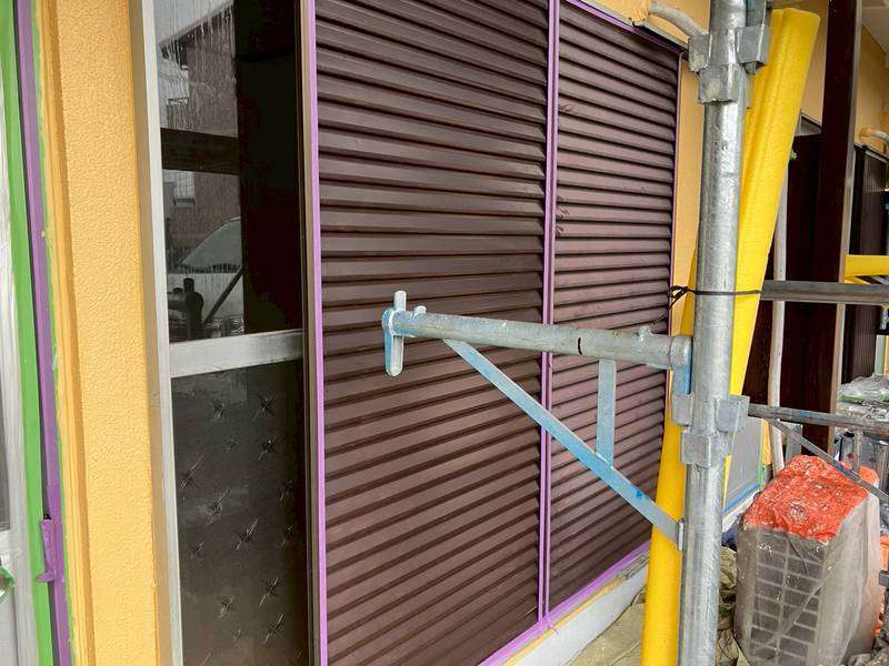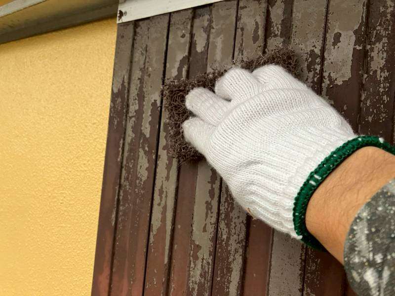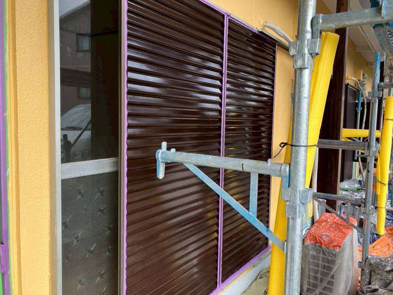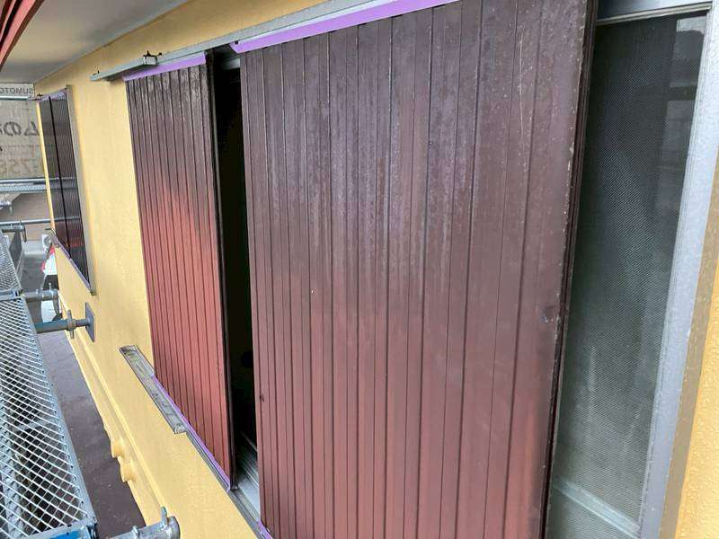 コーポE様の昨日の作業は、雨戸のケレン・下塗り(サビ止め)塗装と