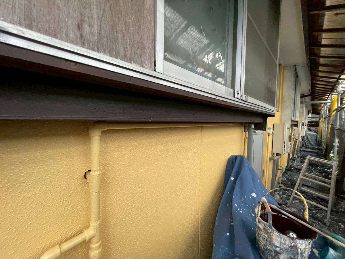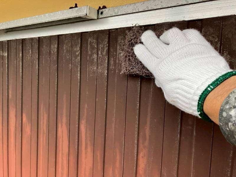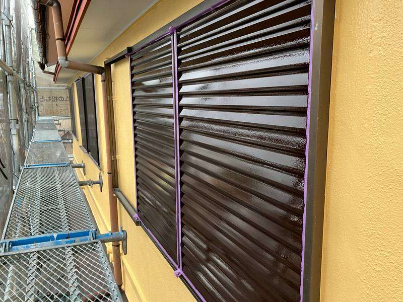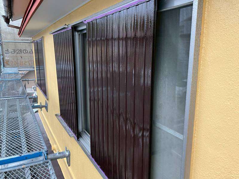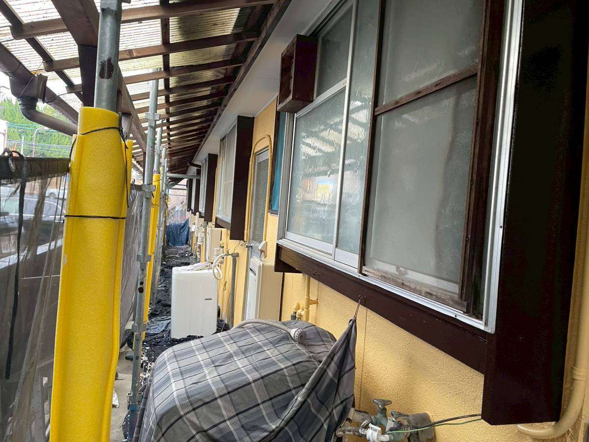 コーポE様の昨日の作業は、雨戸のケレン・下塗り(サビ止め)塗装と