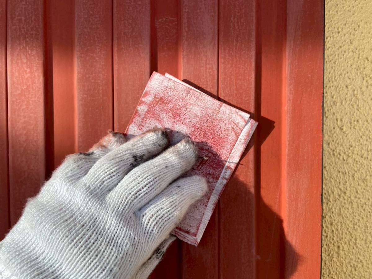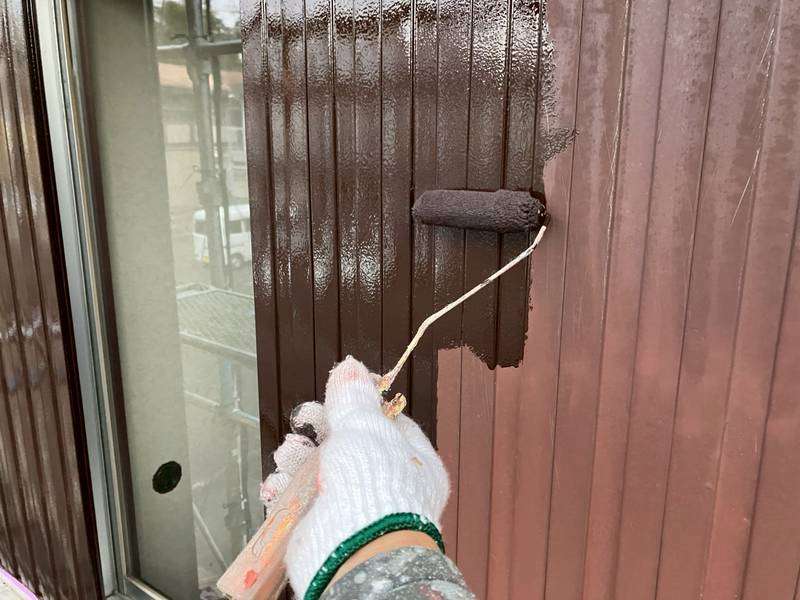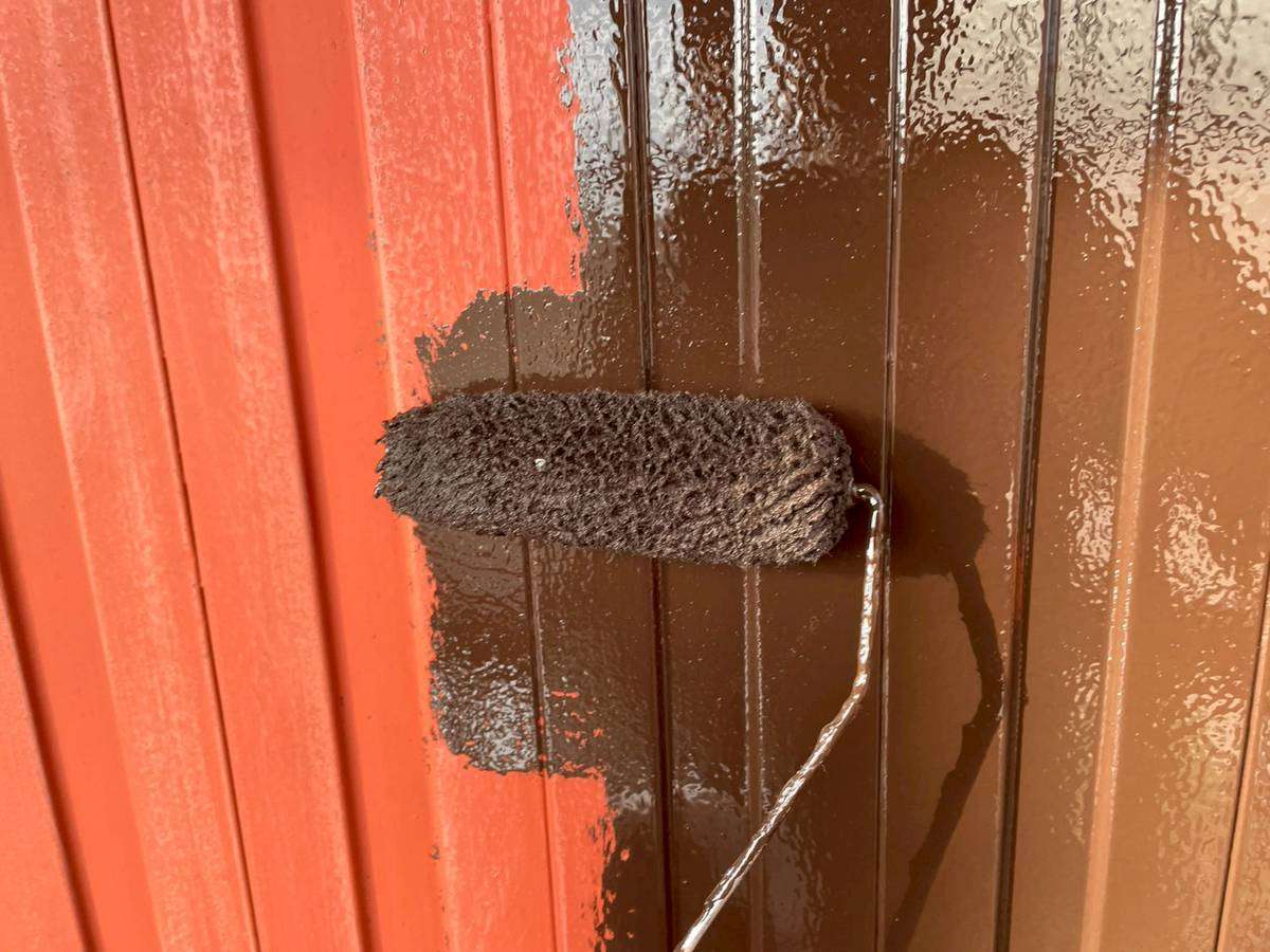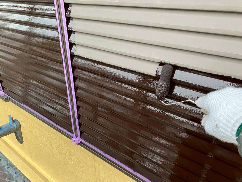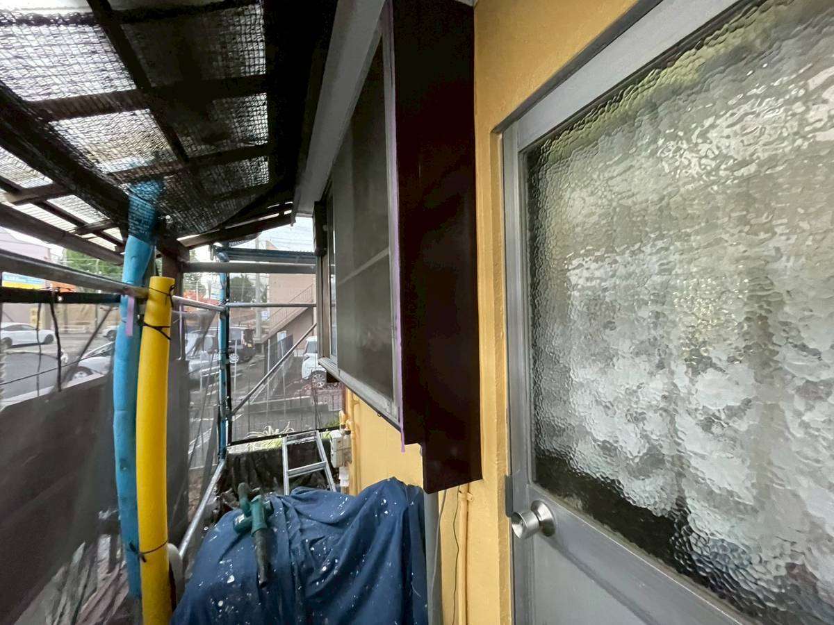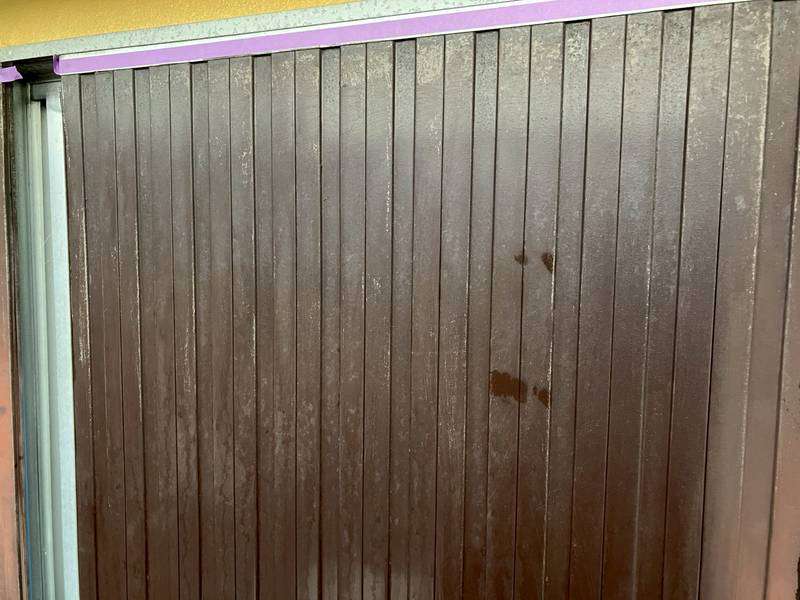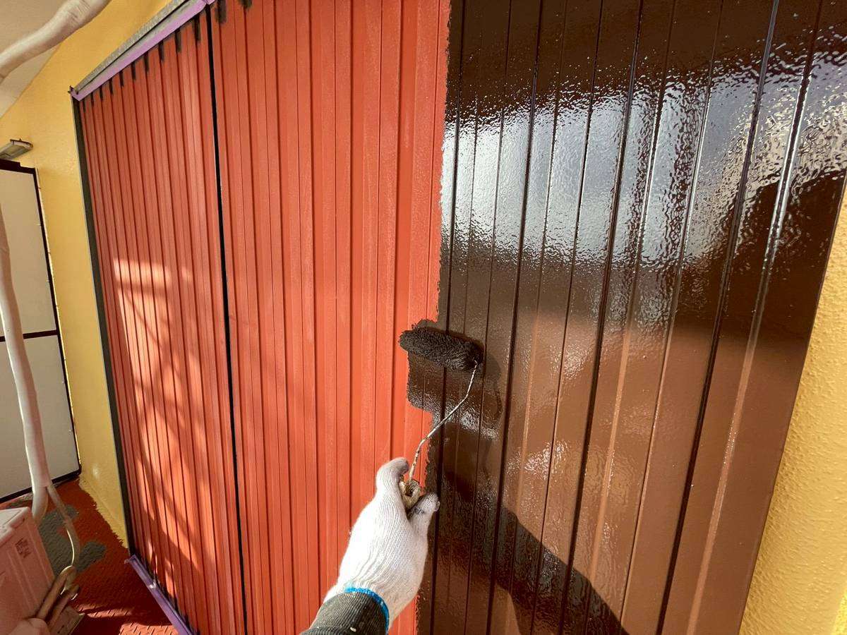 ベランダ面の雨戸は、下塗り(サビ止め)塗装のケレン・上塗り1回目塗装をしています。