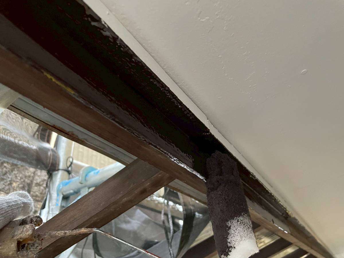 今日の作業は、引き続き付帯部塗装作業を行っています。