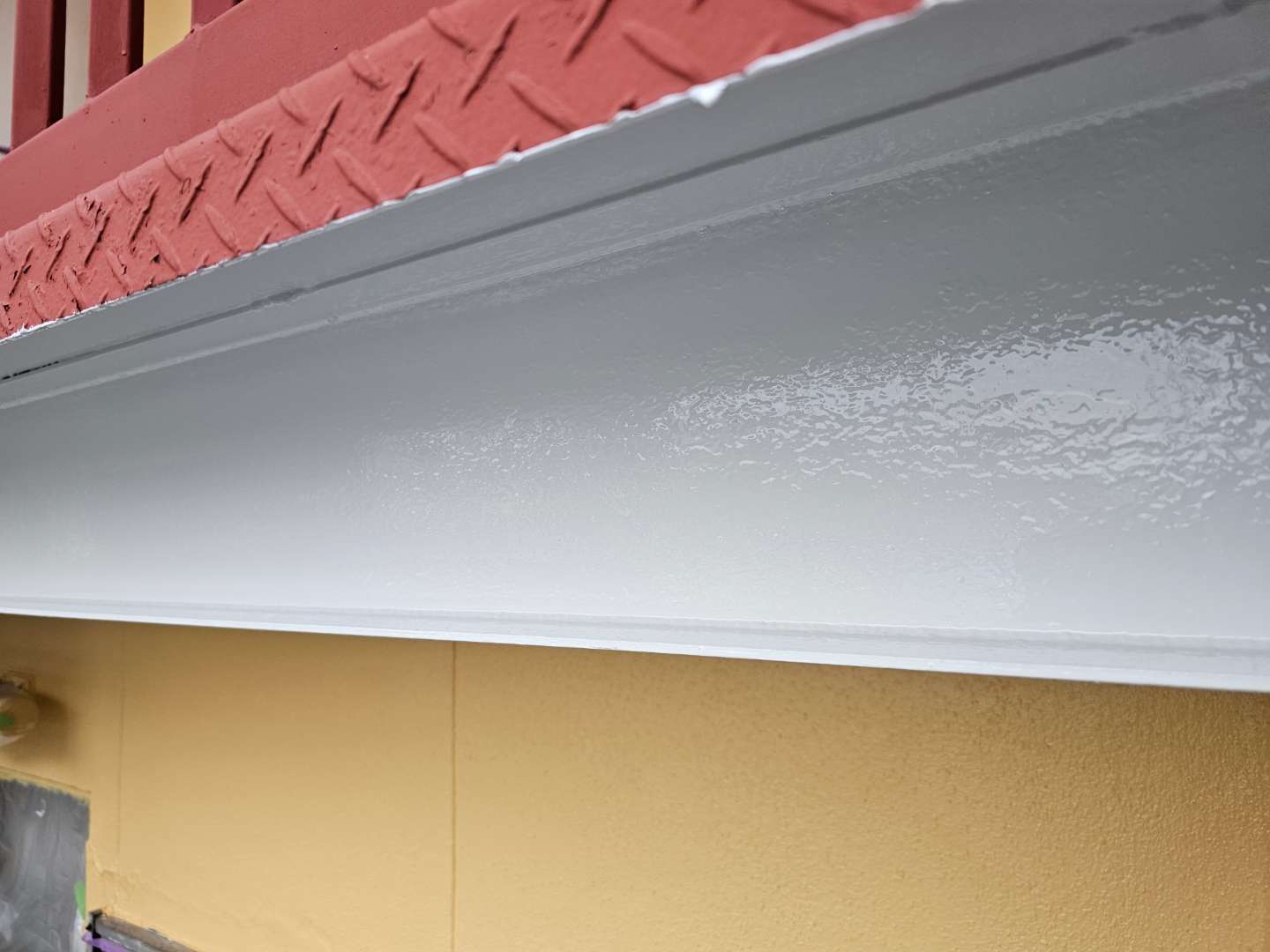 隔て板の上塗り1回目・2回目塗装、鉄骨の上塗り1回目塗装、北面の付帯部の上塗り1回目塗装作業を行っていました。