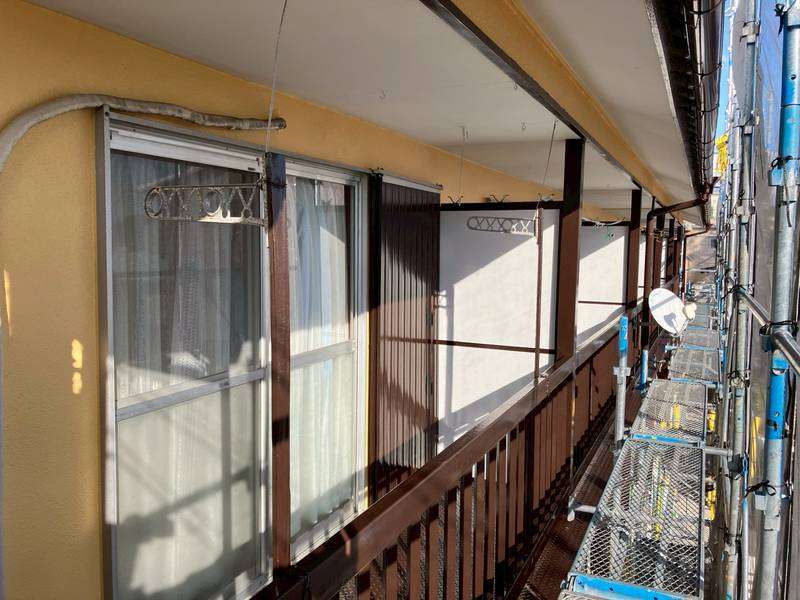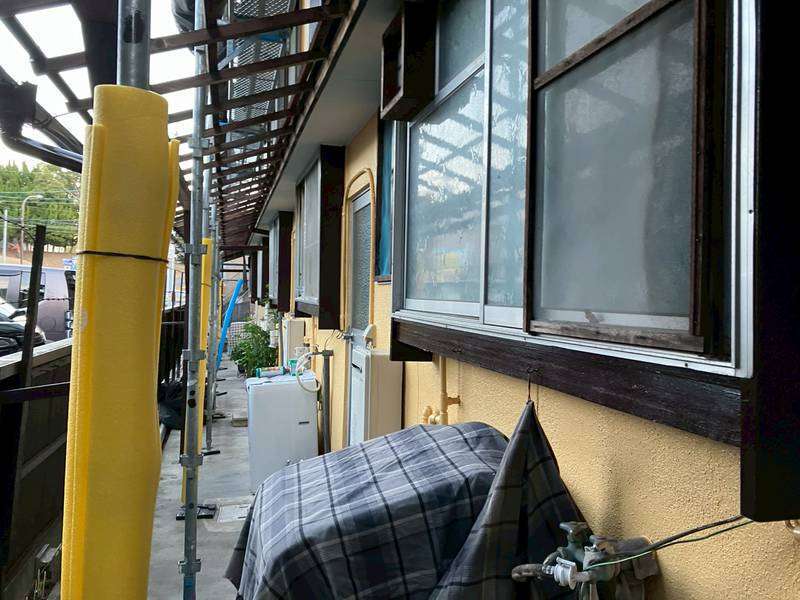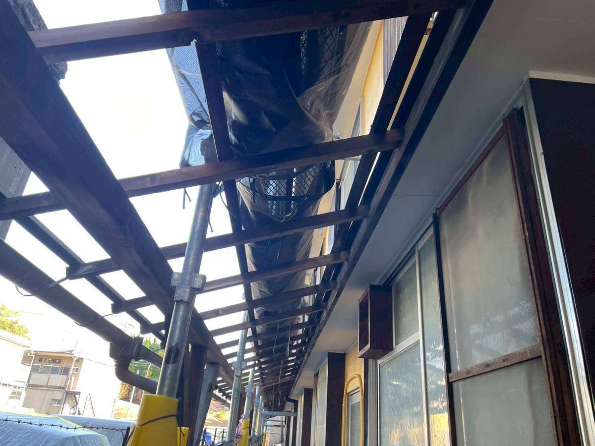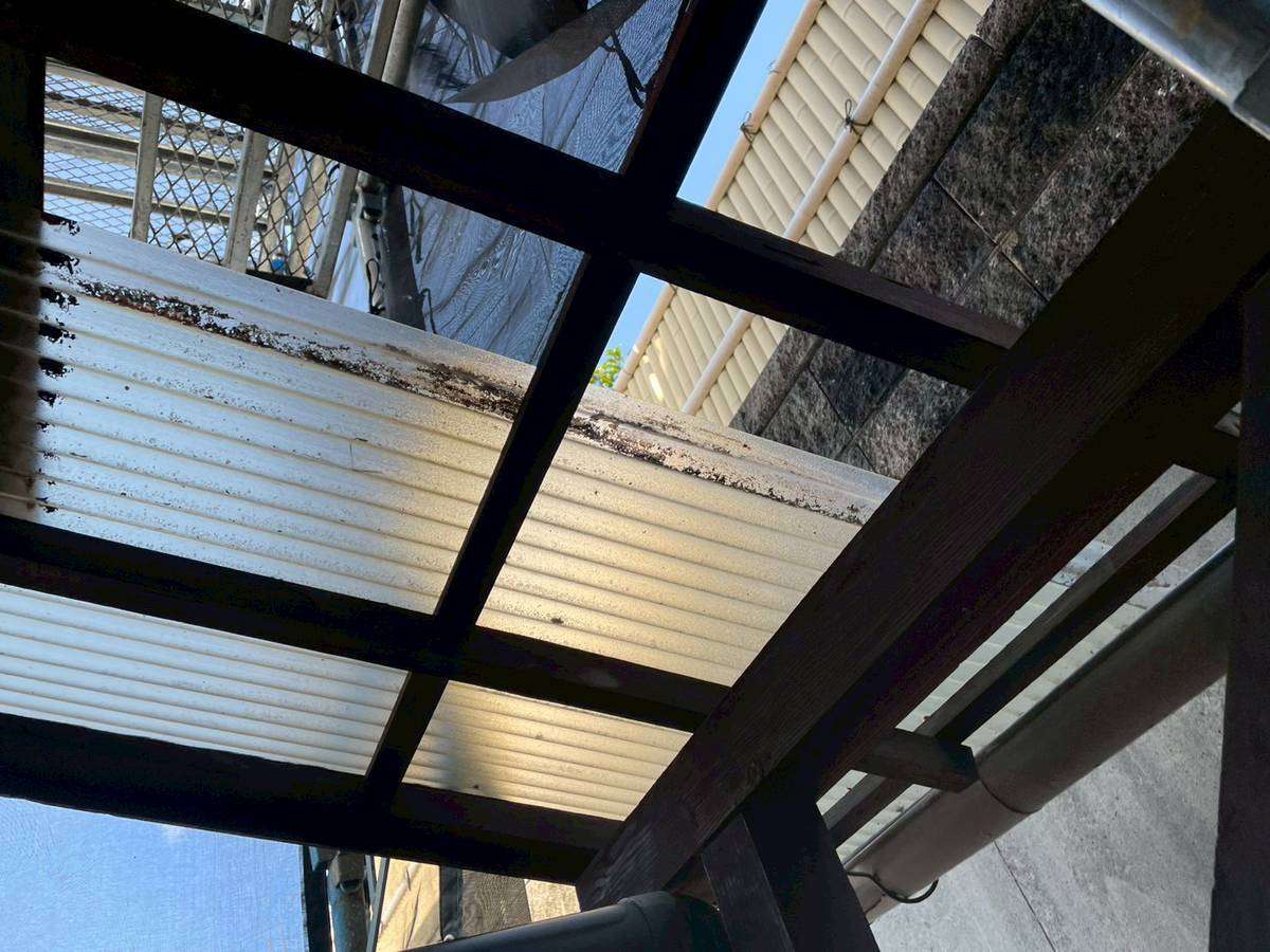 コーポE様の昨日の作業は、塗装の点検・清掃作業・波板の取り外し作業を行いました。