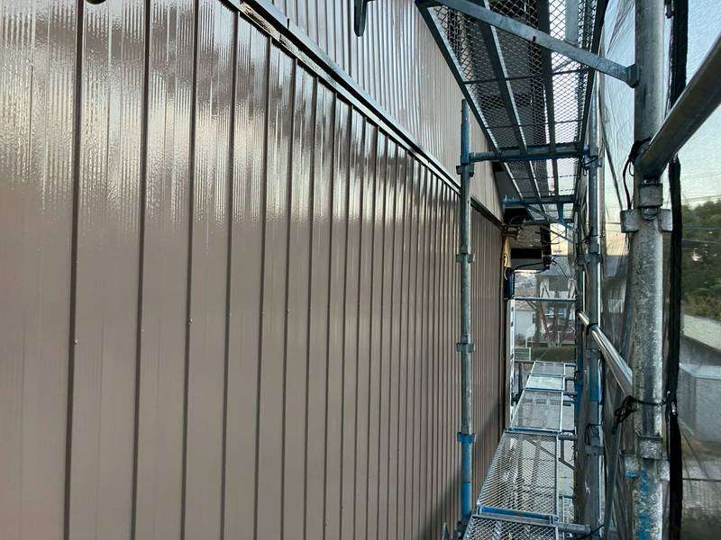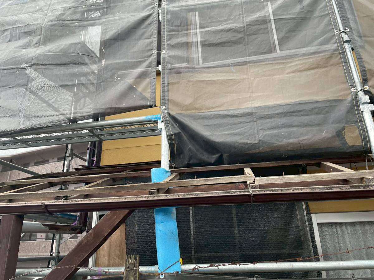 仮設足場の解体後に、波板の取付け作業を行います。