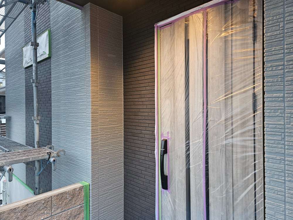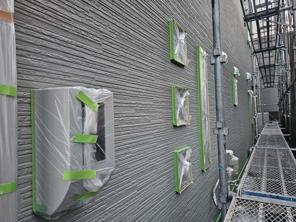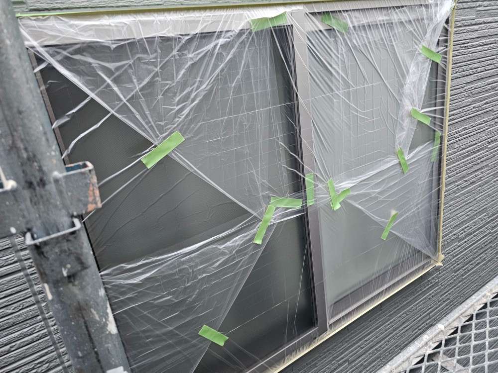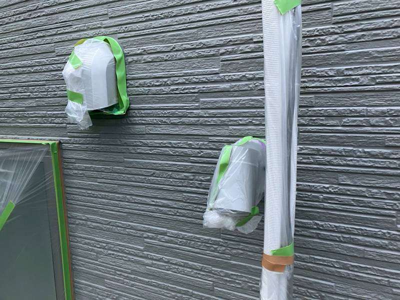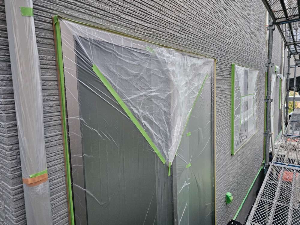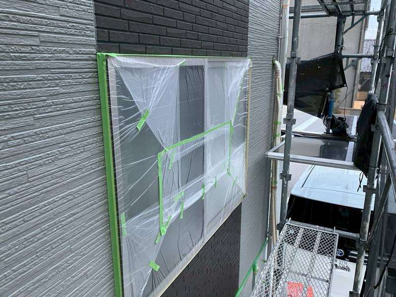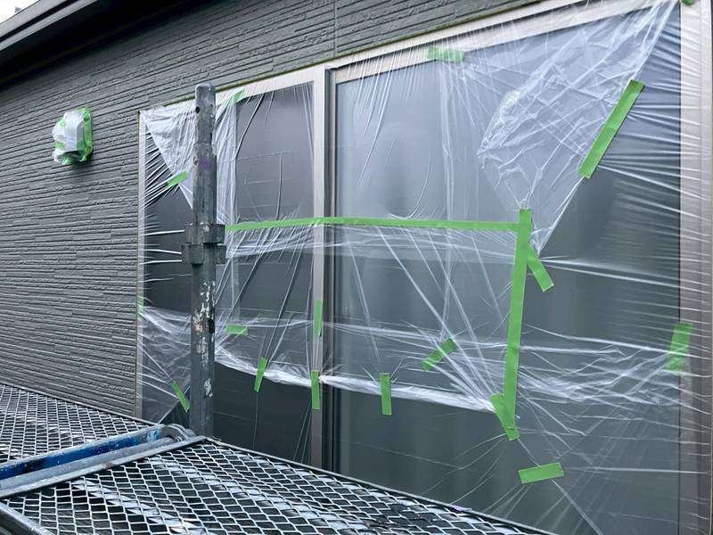 可児市Y様邸の昨日の作業内容は、非塗装部分の養生作業を行っています。