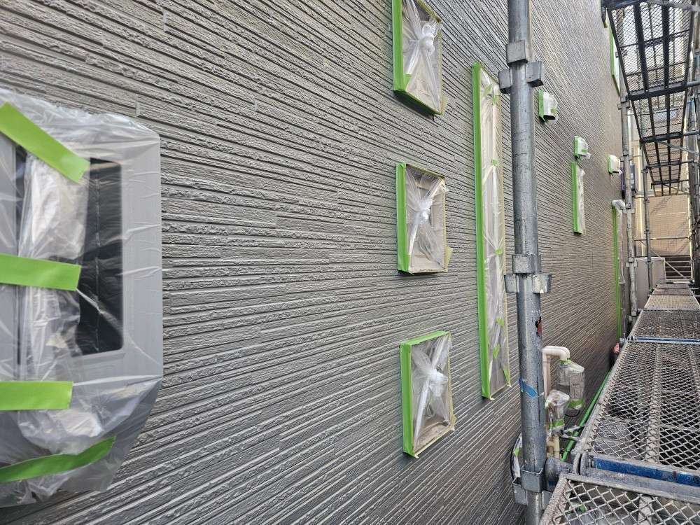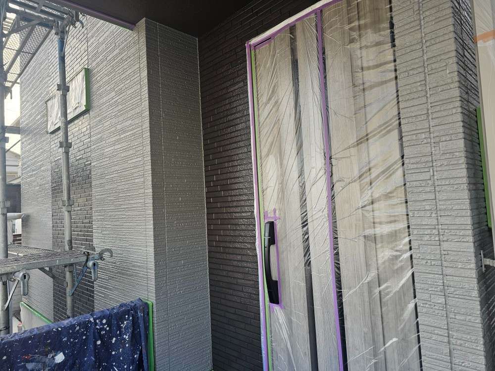 可児市のY様邸の昨日の作業内容は、外壁クリヤー塗装の下塗り塗装、屋根の下塗り塗装作業を行っています。