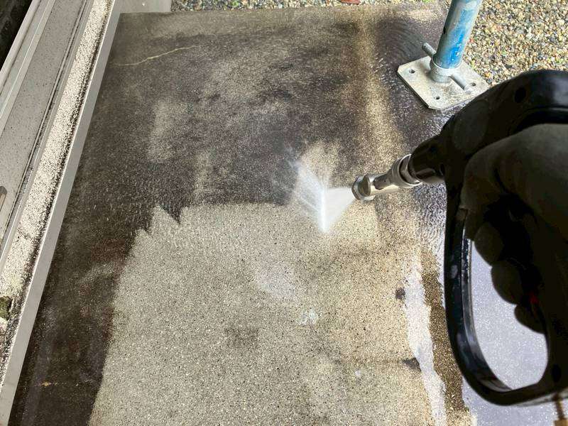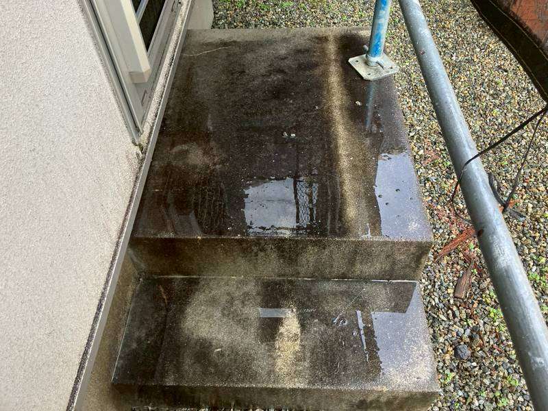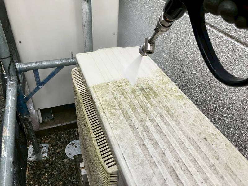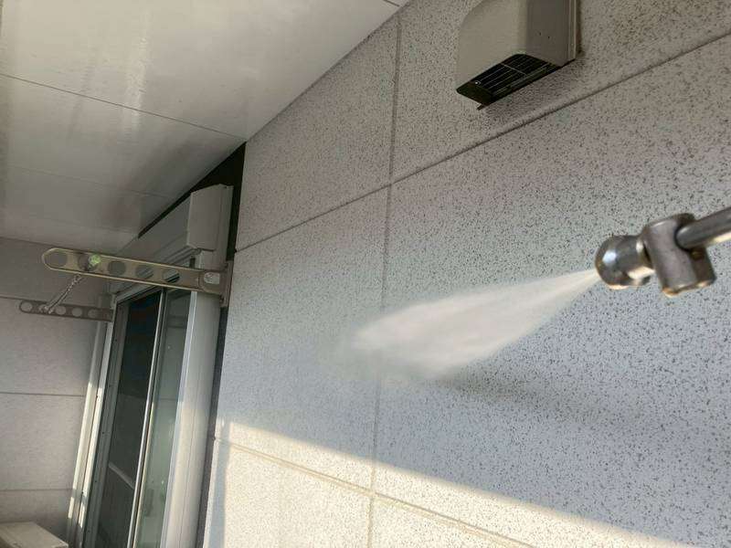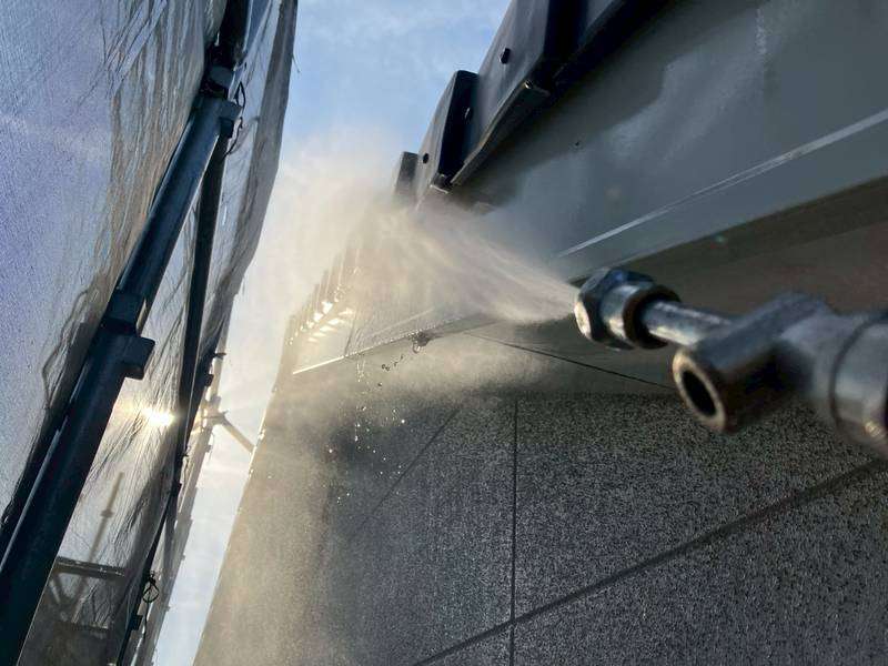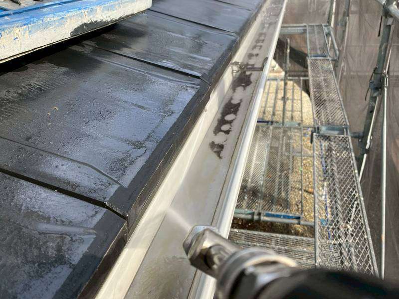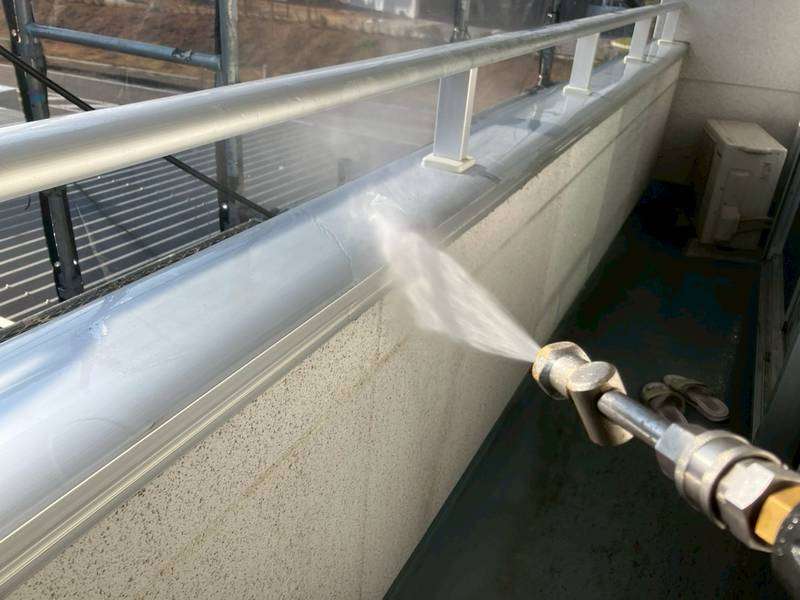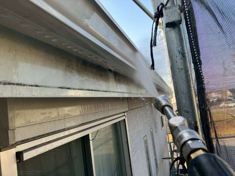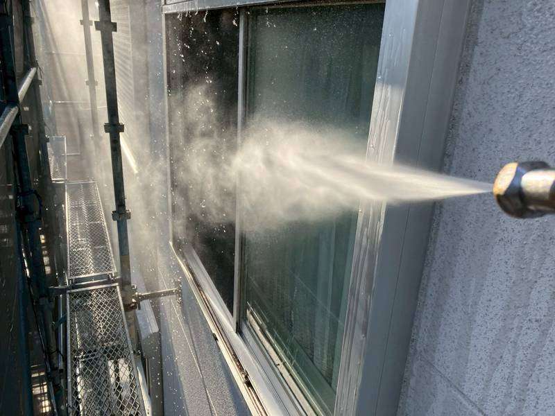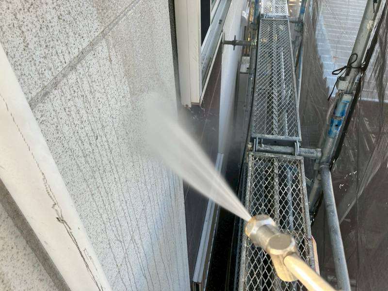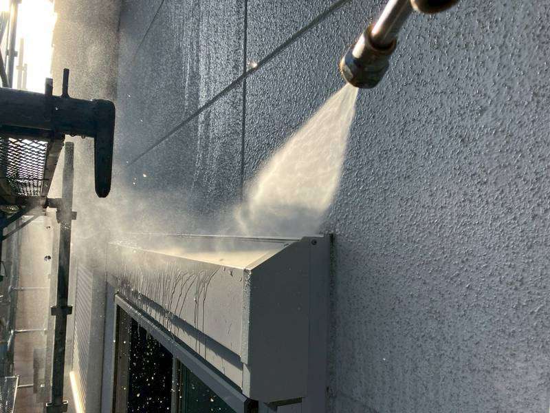 美濃加茂市E様邸は、仮設足場の組立完了、昨日の作業内容は、外壁の高圧洗浄作業を行っています。