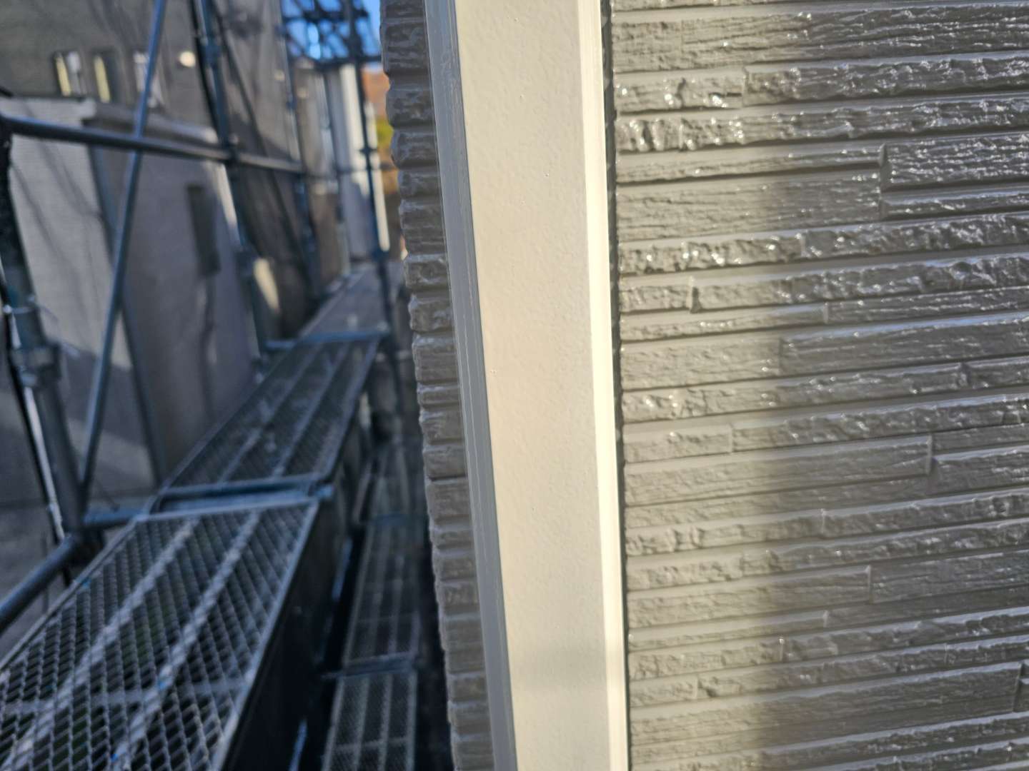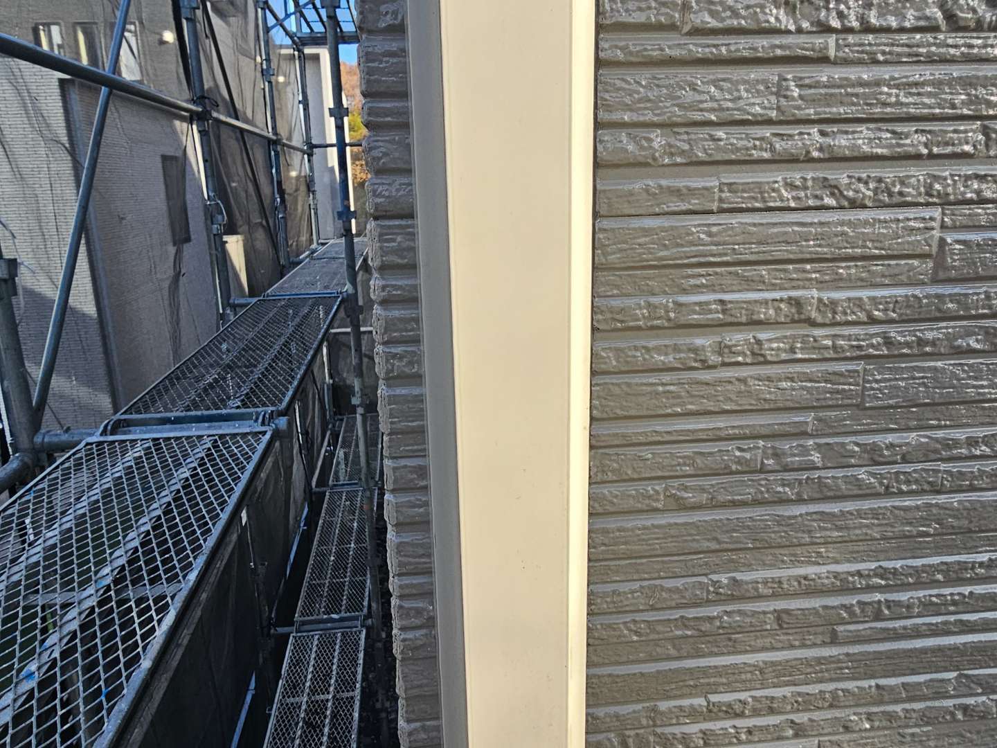 今日の作業は、コーキング(シーリング)の旧シーリングカット・撤去作業を行っています。
