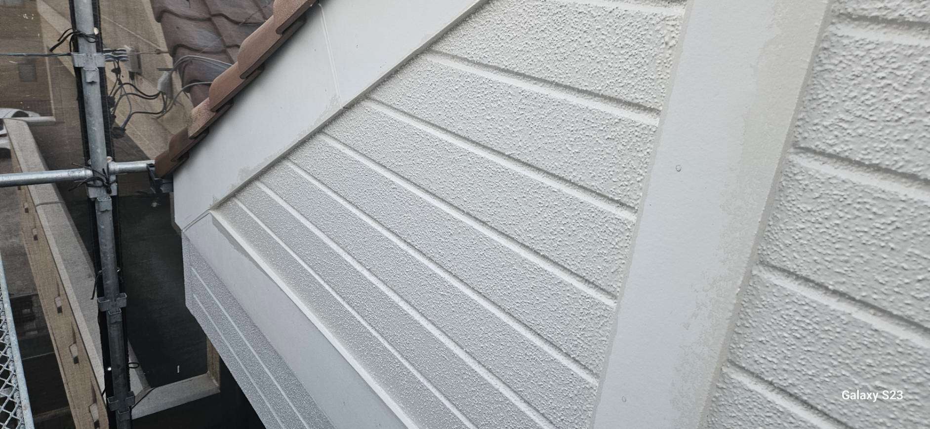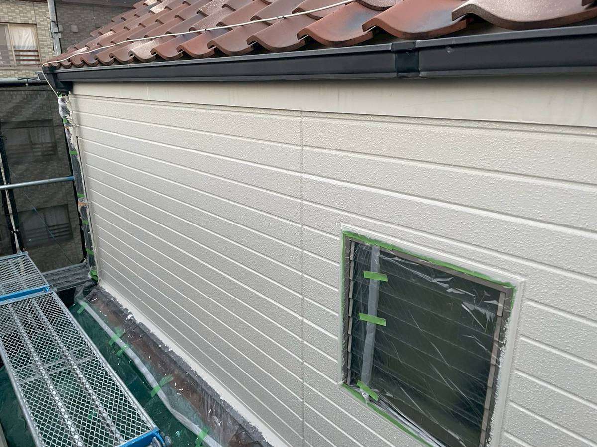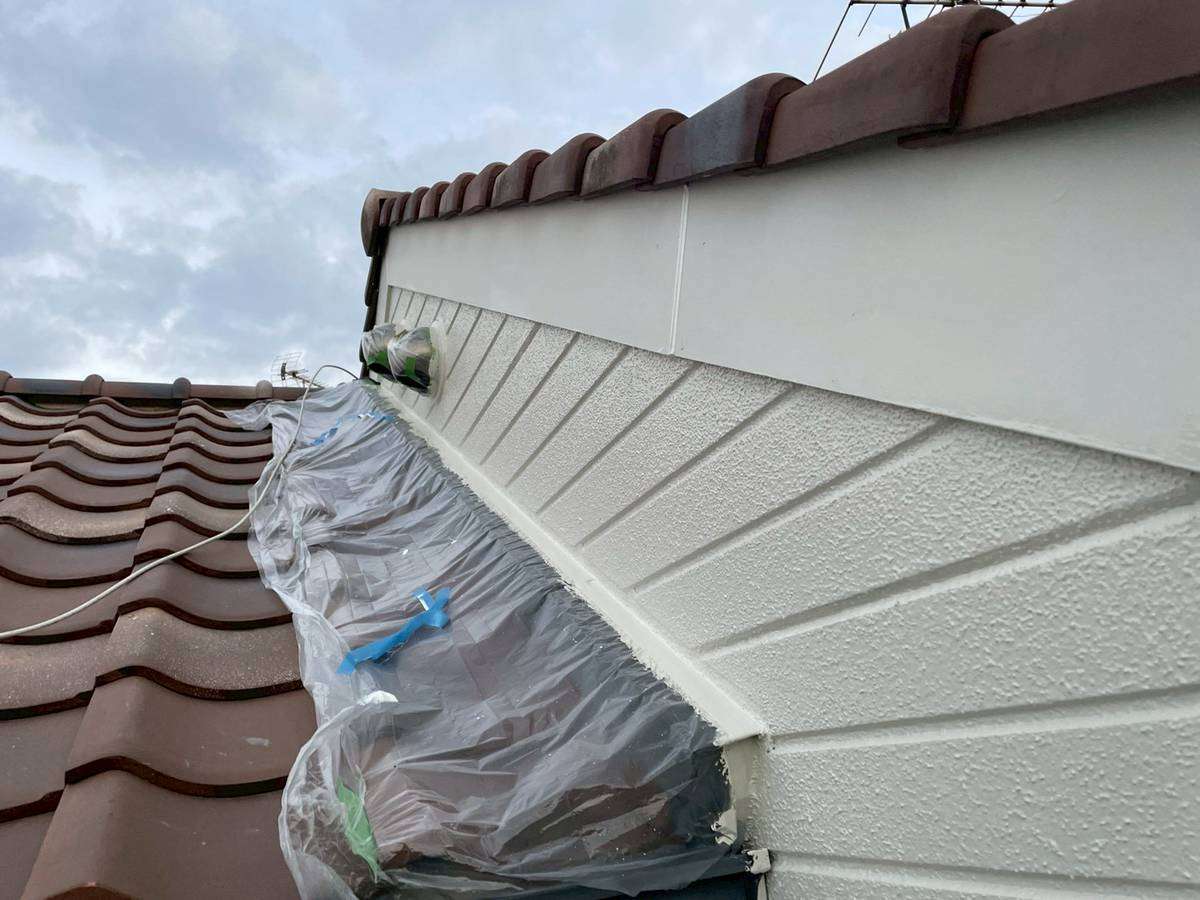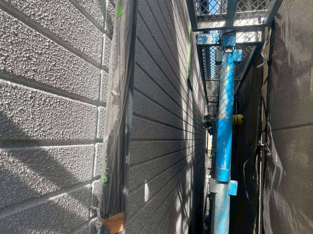 今日の作業は、引き続き外壁の中塗り塗装作業を行っています。