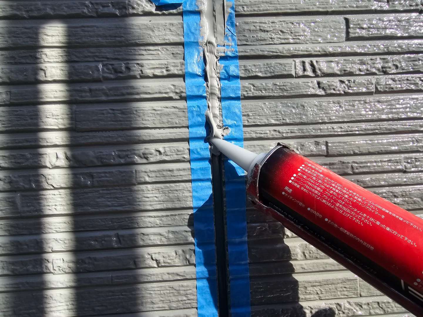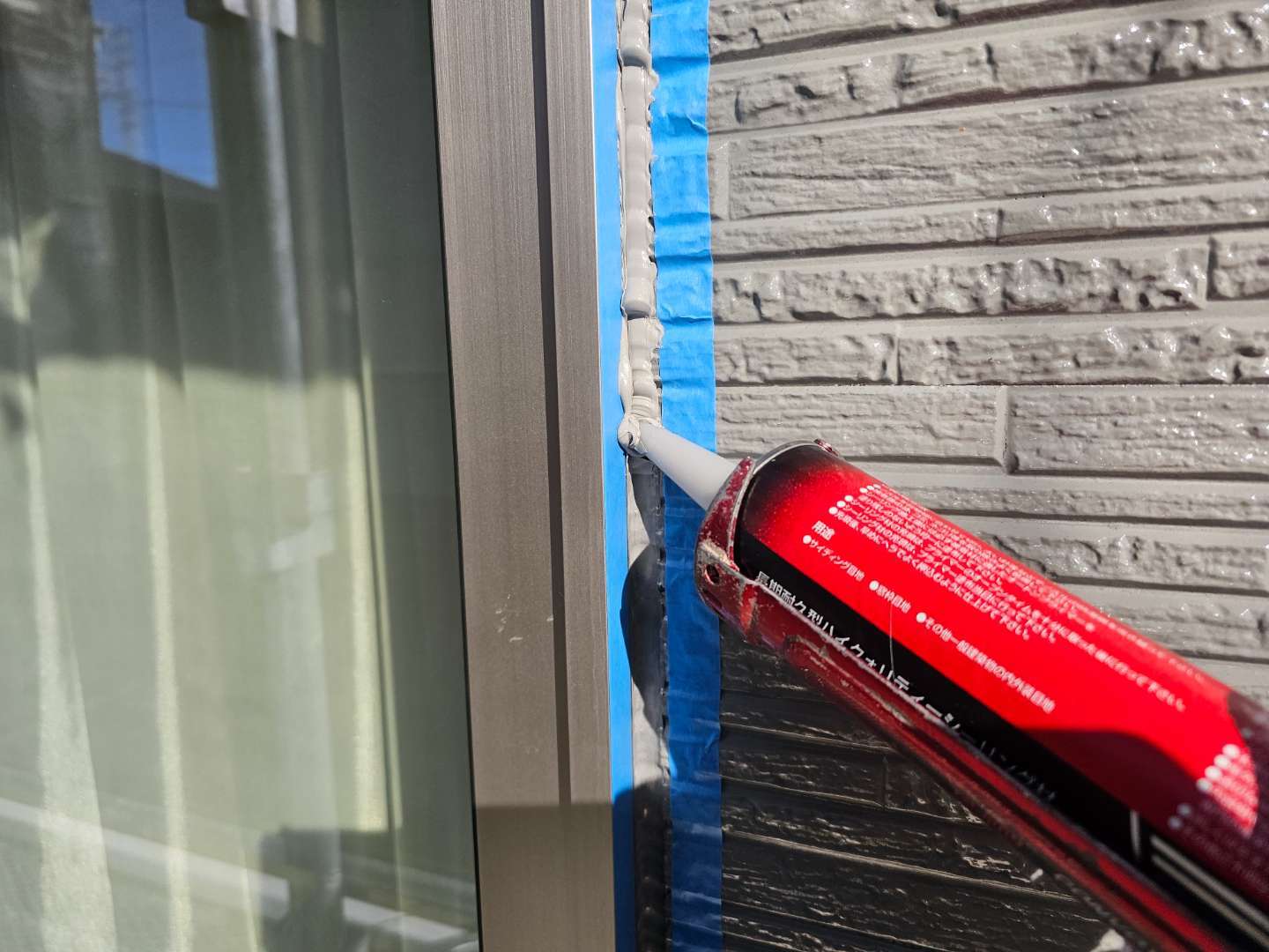 可児市のY様邸の昨日の作業内容は、外壁縦目地コーキング(シーリング)打替え作業と窓回りの増し打ち作業を行っています。