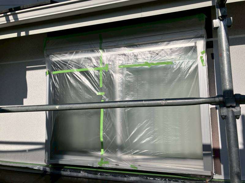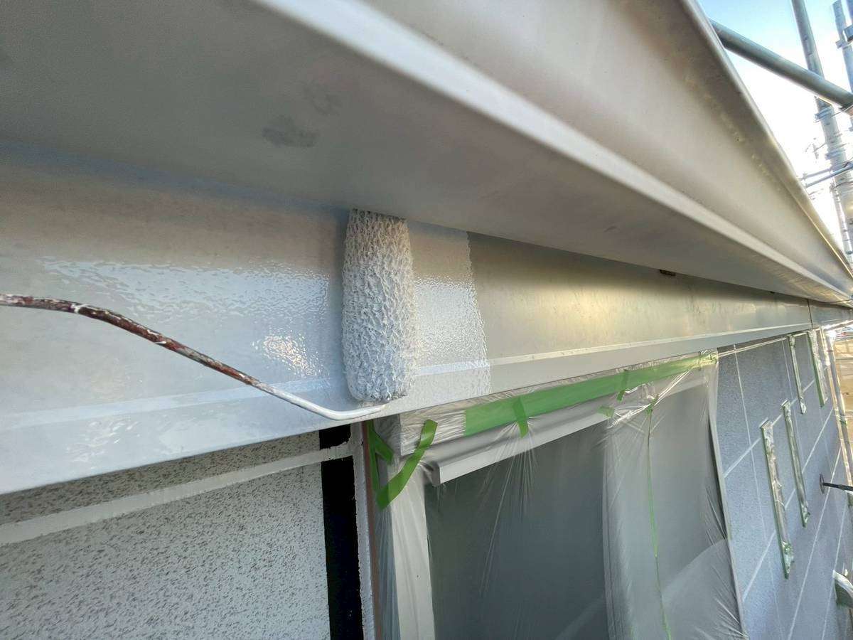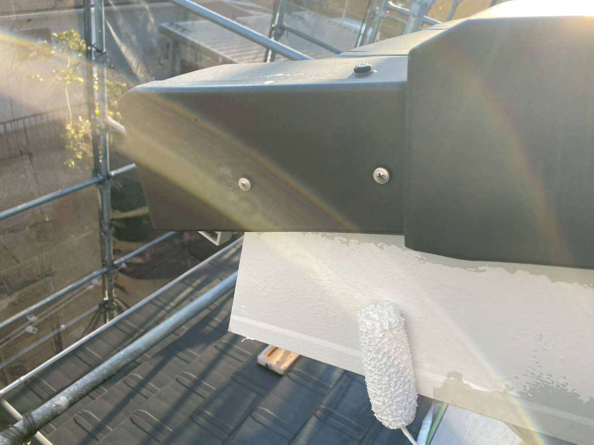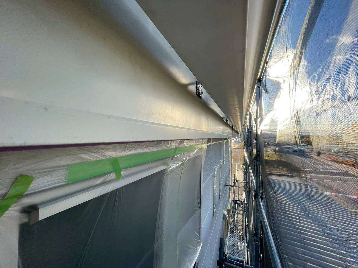 美濃加茂市のE様邸の昨日の作業内容は、非塗装部分の養生作業と破風板・鼻隠し板の下塗り塗装作業を行っています。