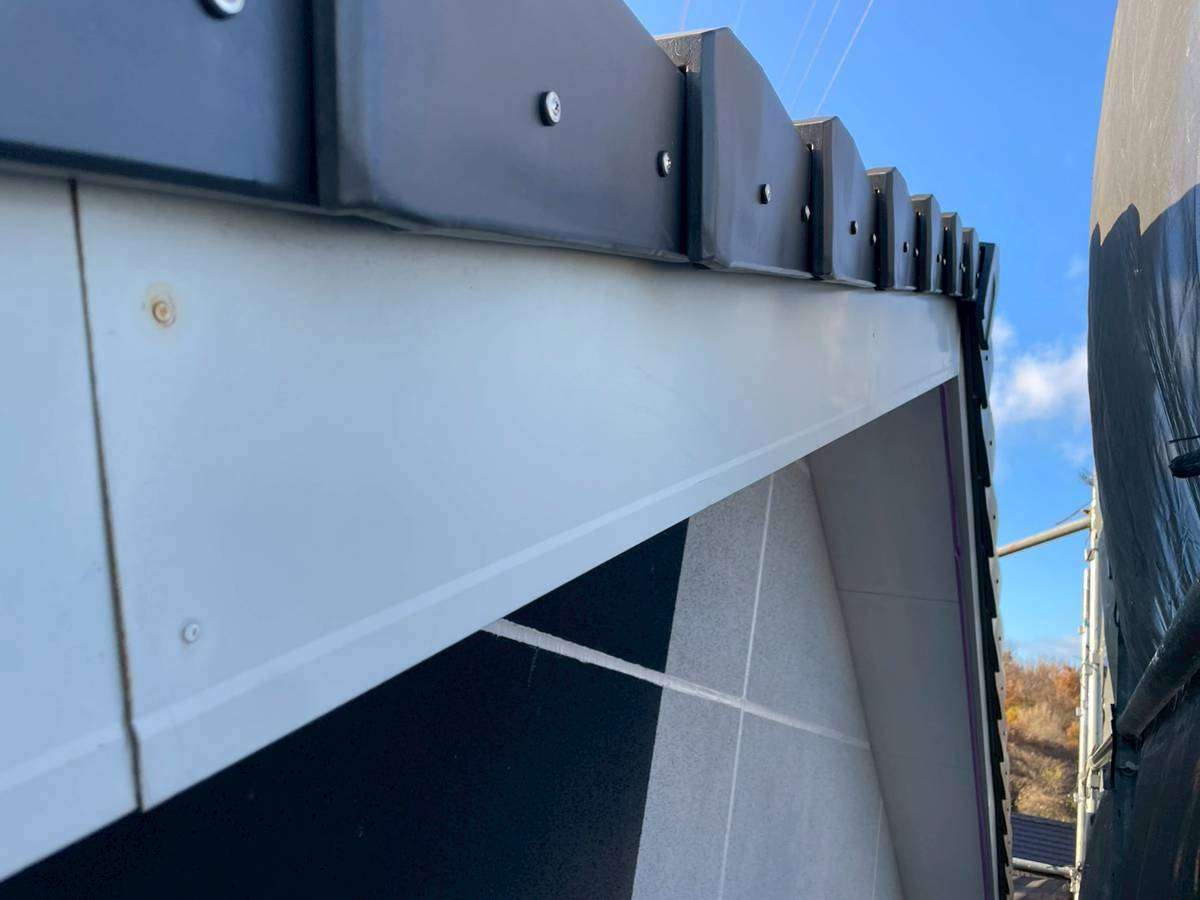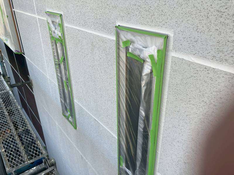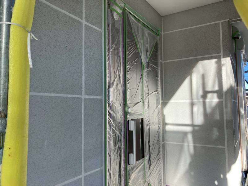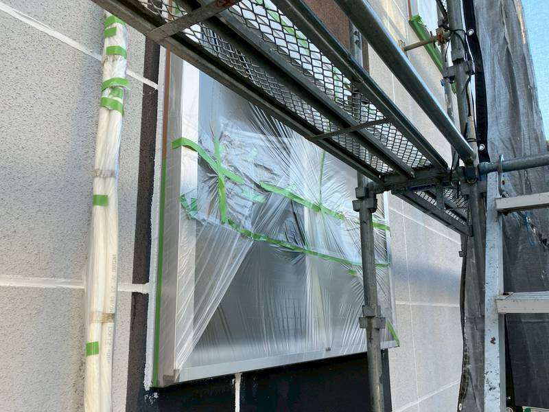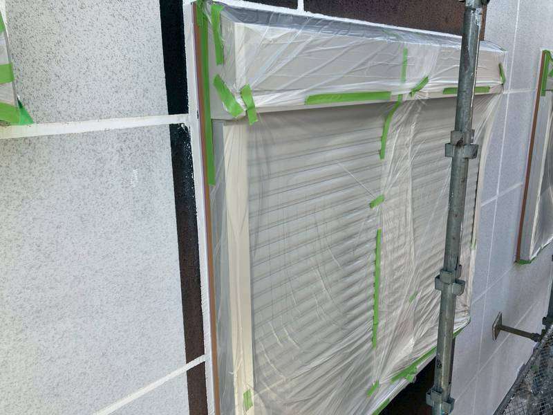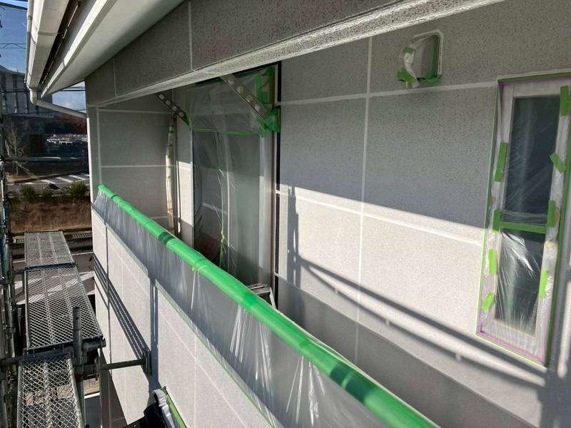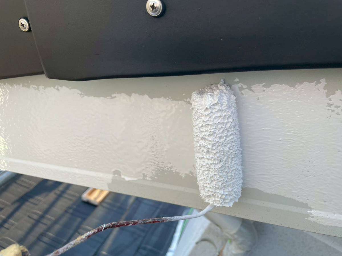 美濃加茂市のE様邸の昨日の作業内容は、非塗装部分の養生作業と破風板・鼻隠し板の下塗り塗装作業を行っています。