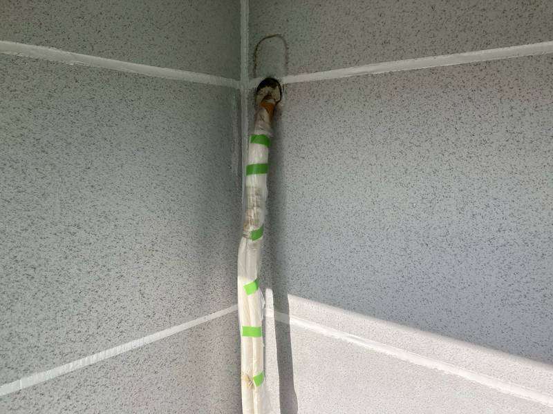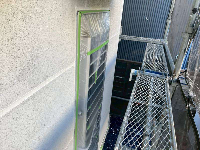 エアコンの配管カバーは取り外してから養生作業を行いました。