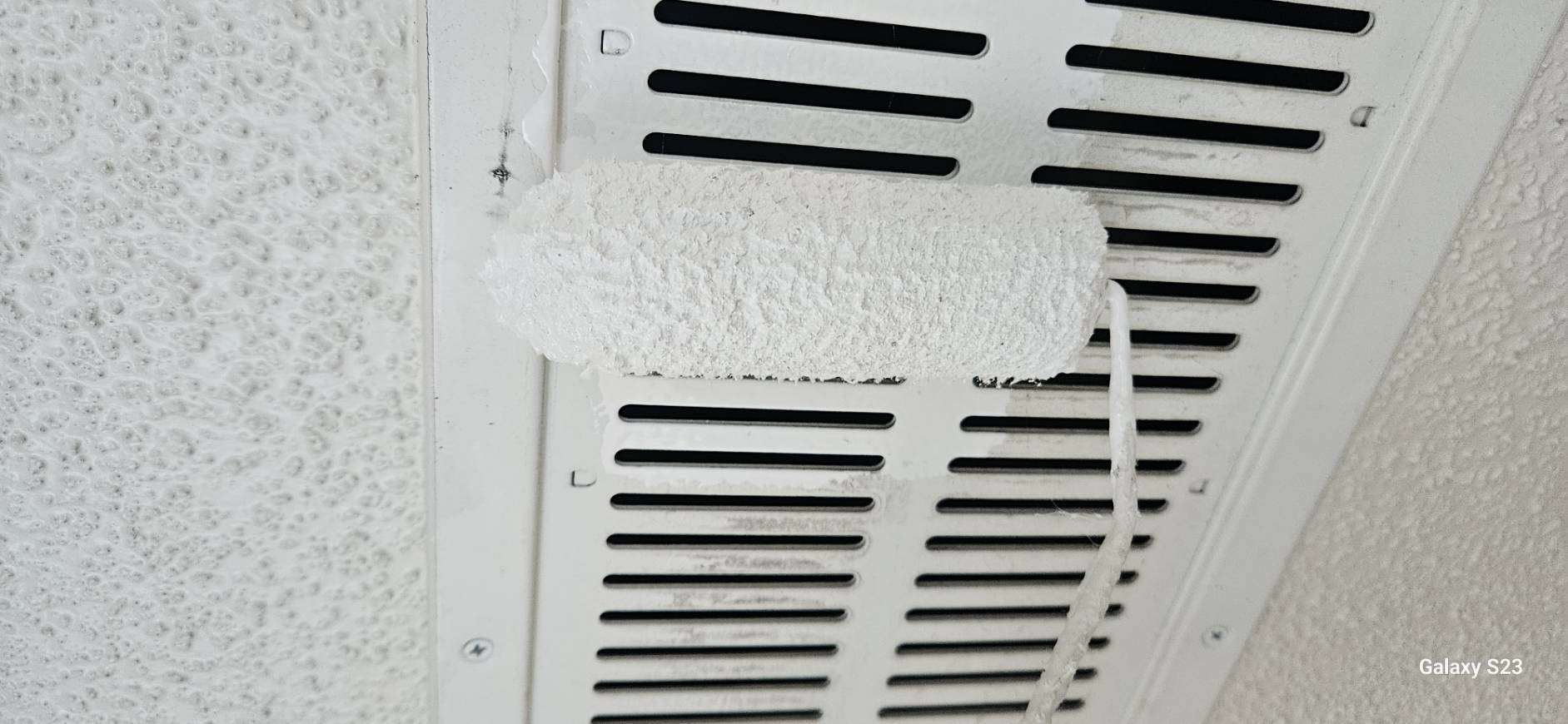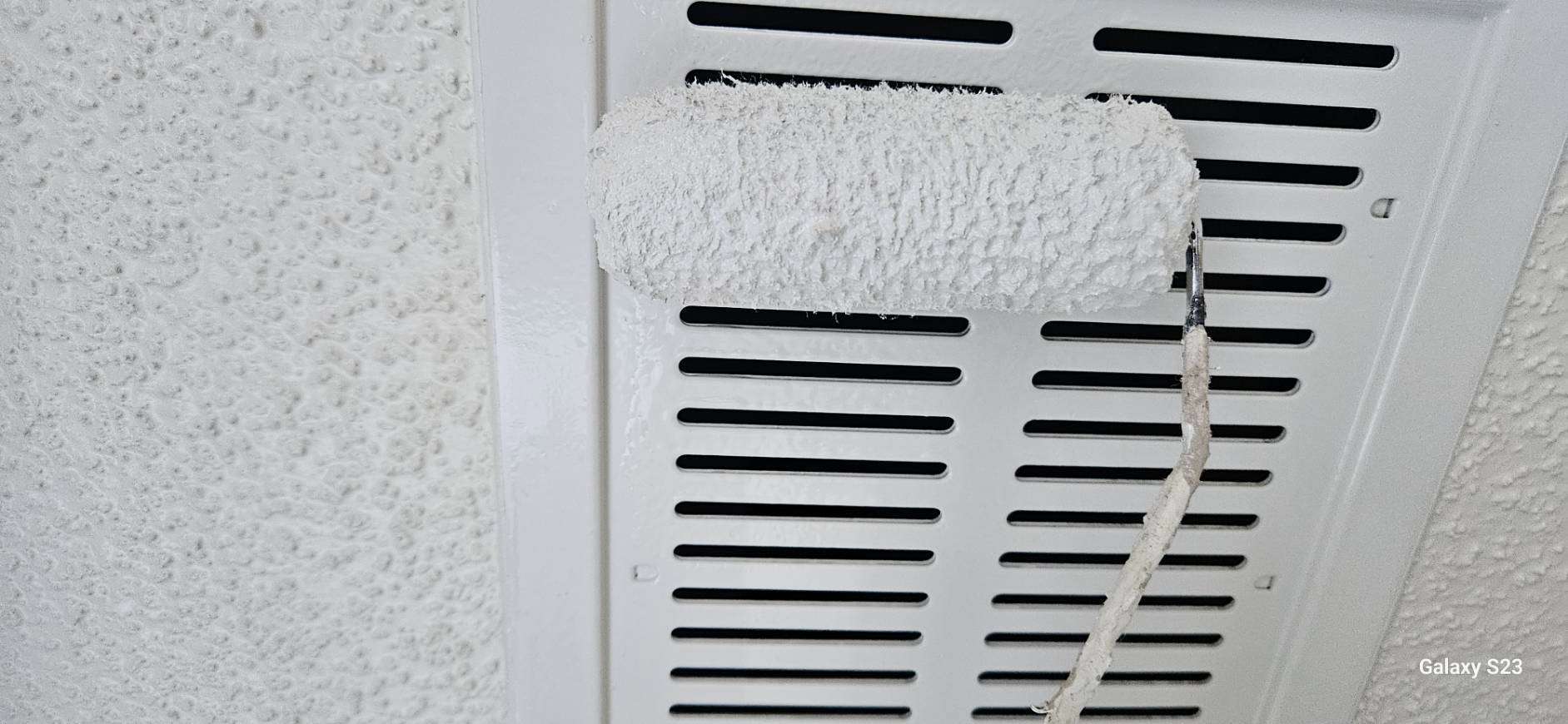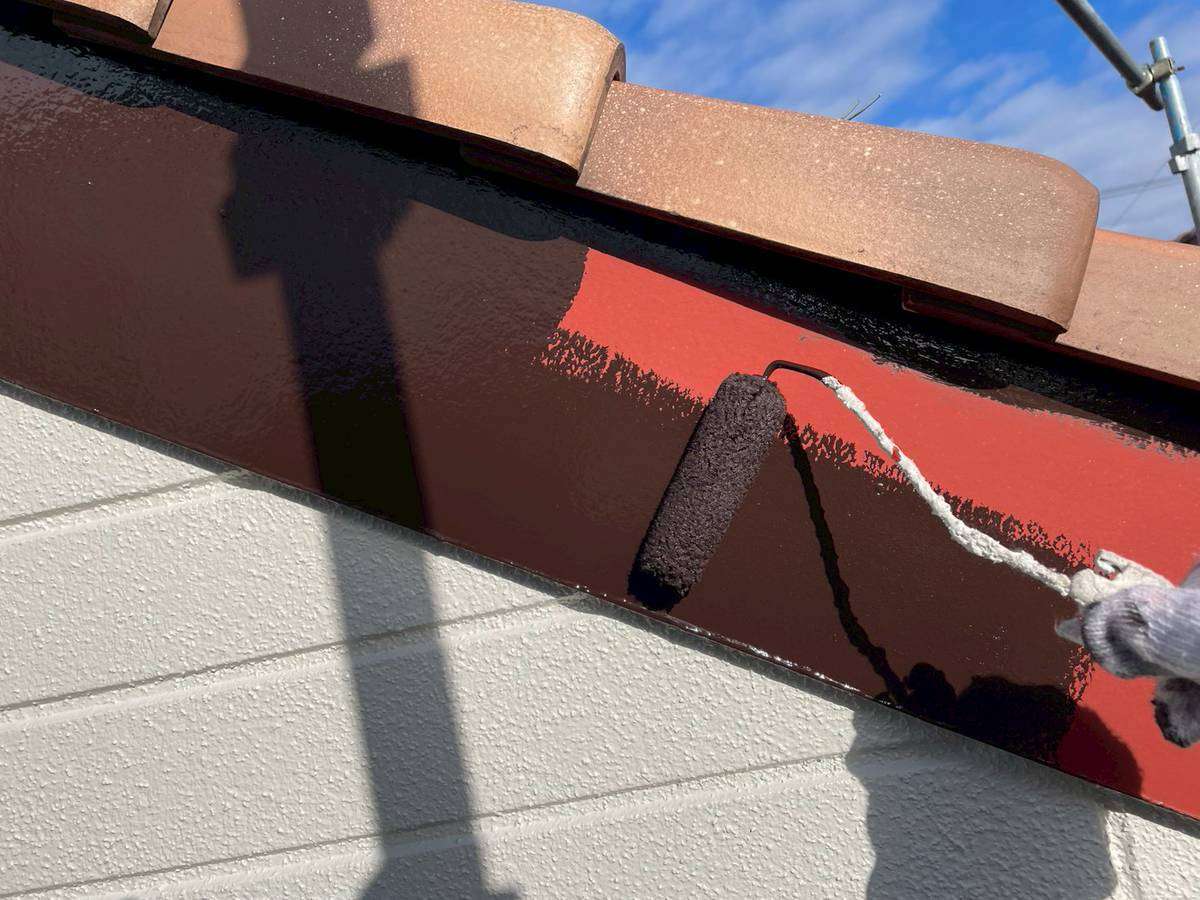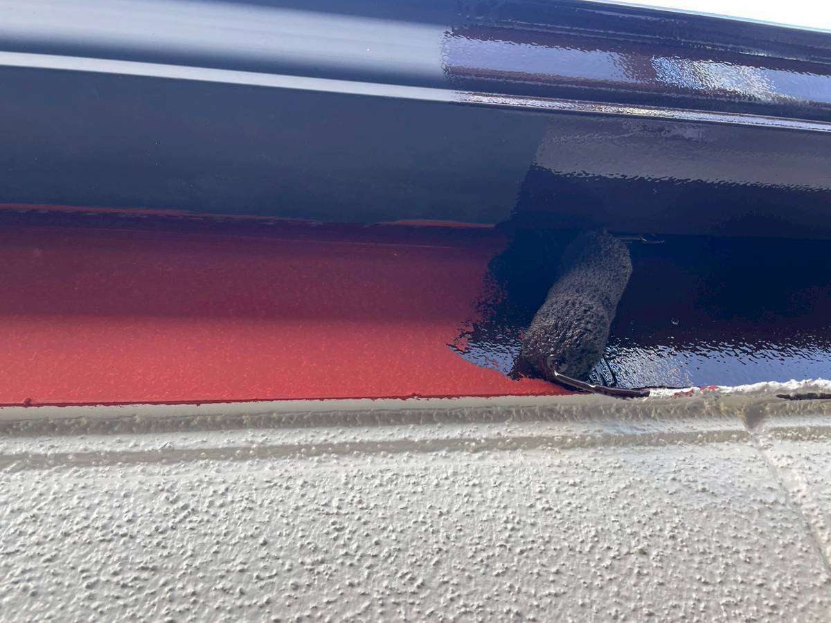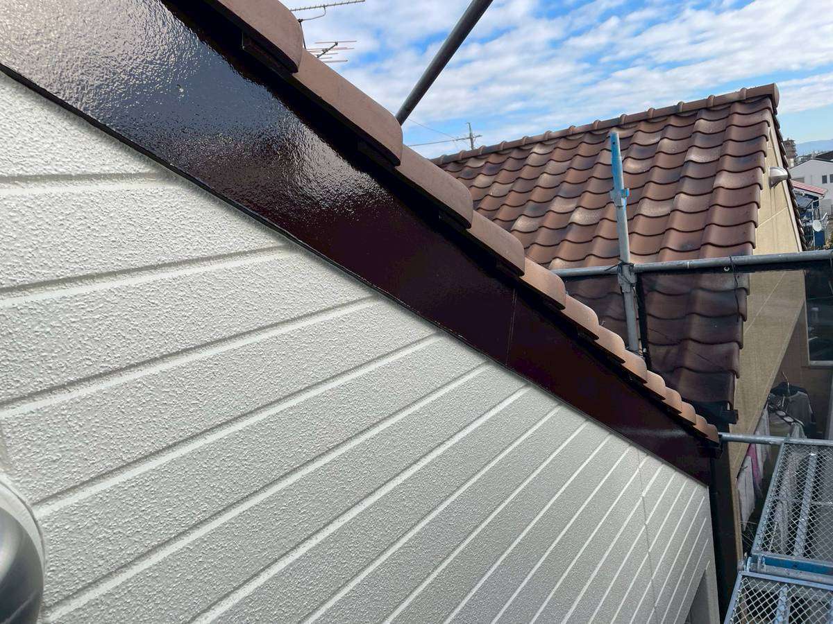 破風板・鼻隠し板・軒樋・縦樋の上塗り1回目塗装、シャッターボックスは、上塗り1回目・2回目塗装、軒天の換気口は下塗り、上塗り1回目・2回目塗装、鉄部ガス管は、下塗り(錆止め)塗装まで進んでいます。
