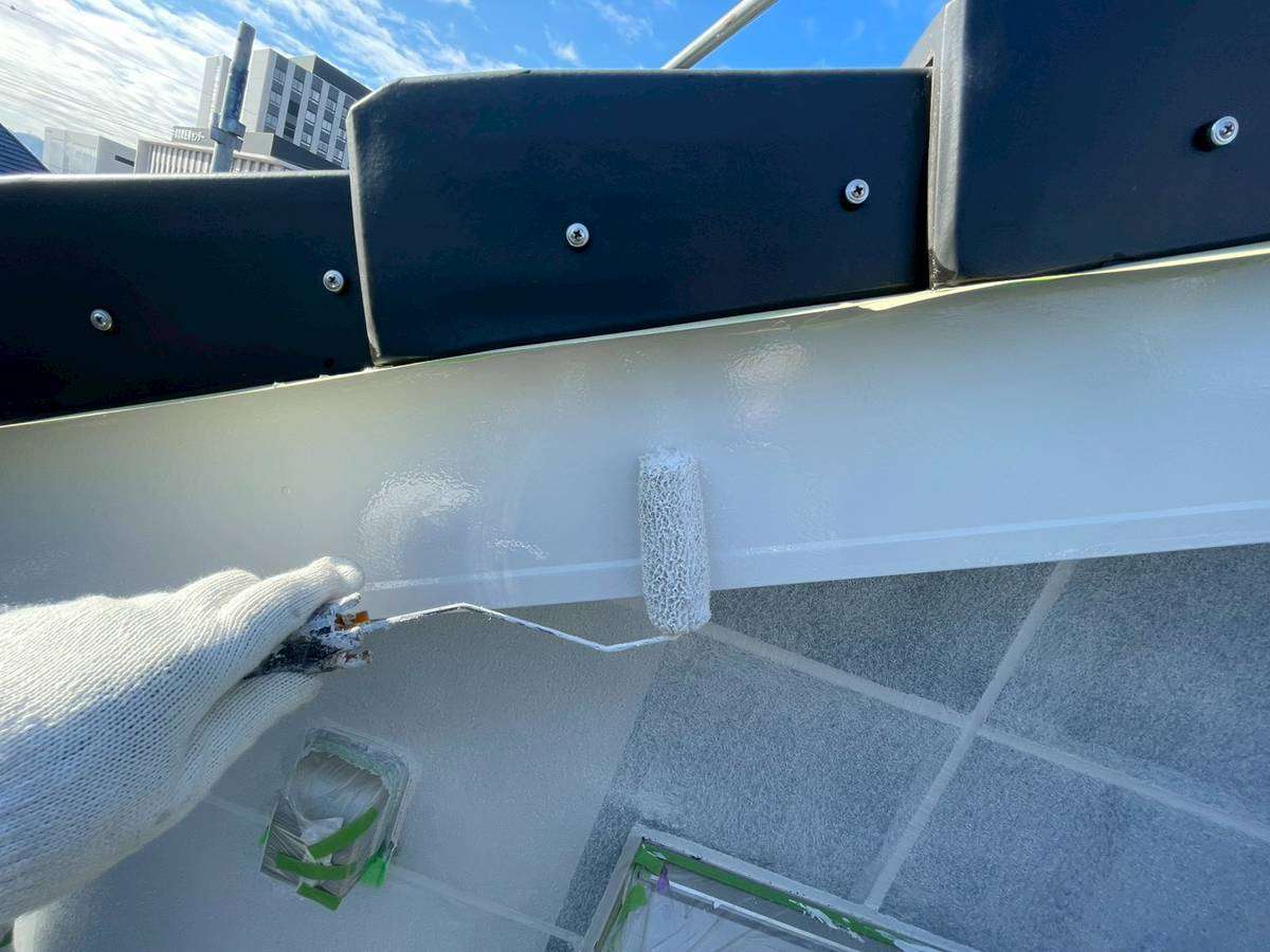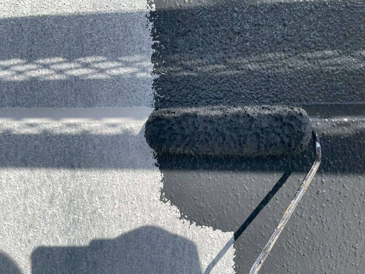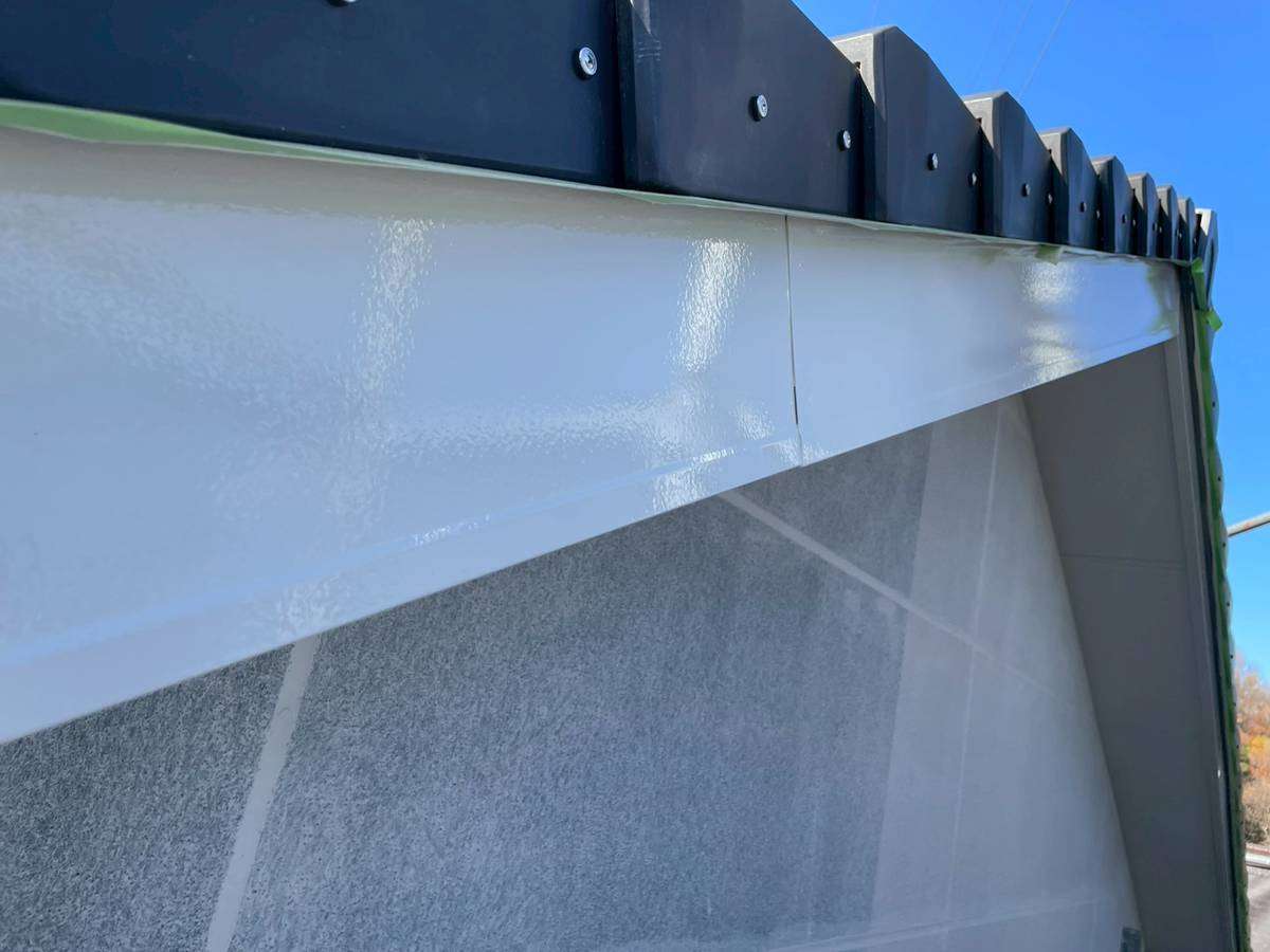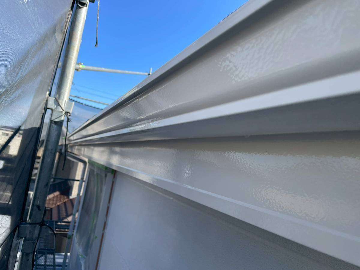 美濃加茂市のE様邸の昨日の作業内容は、外壁の中塗り塗装作業と破風板・鼻隠し板・軒樋の上塗り2回目塗装作業を行っています。