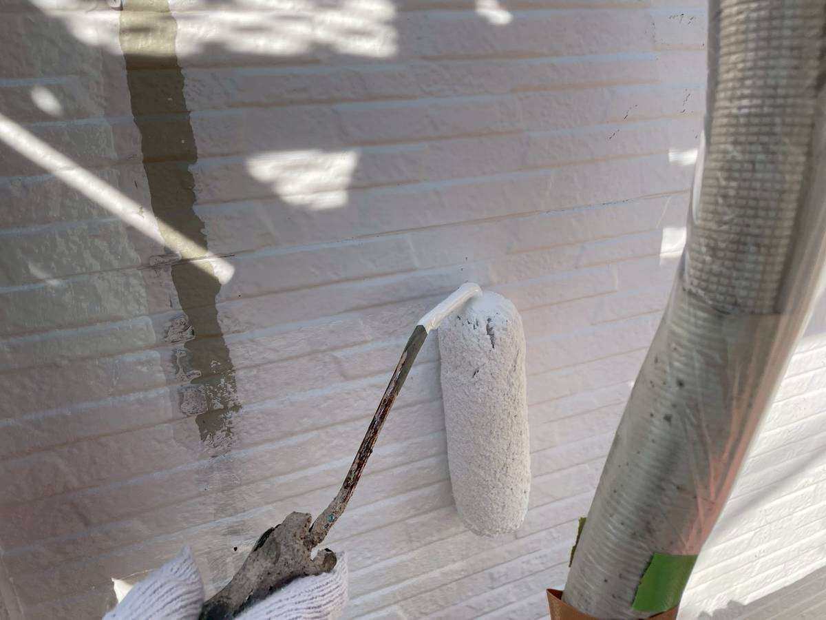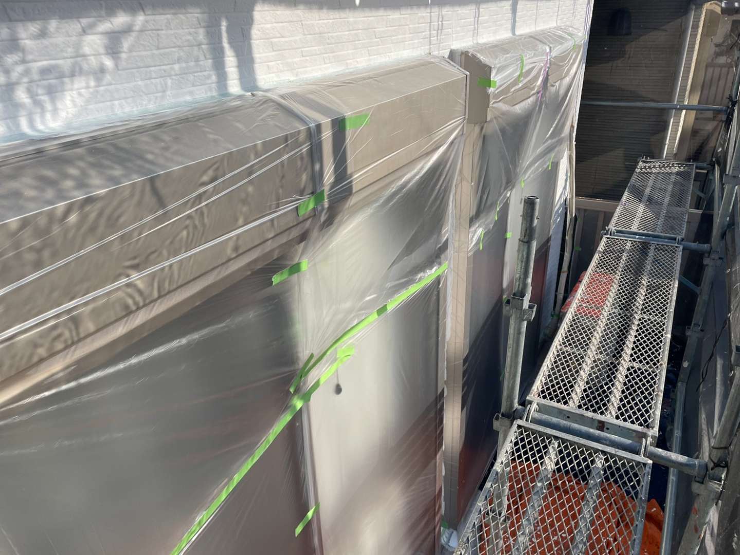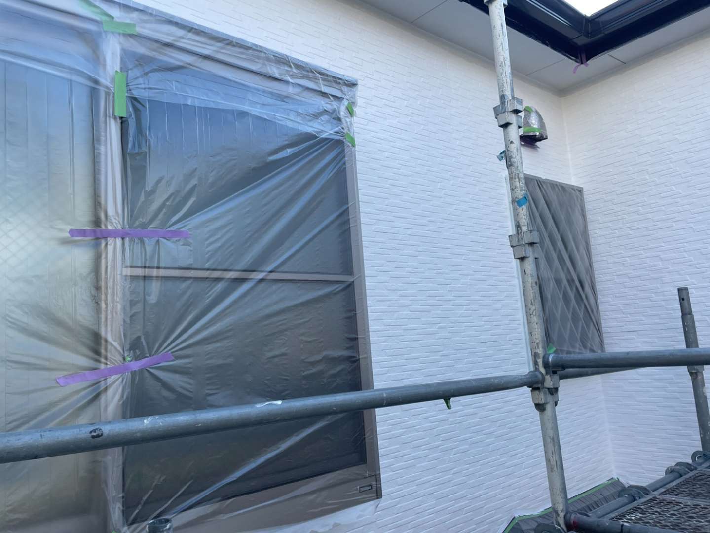 S様邸の昨日の作業は、養生作業・外壁の下塗り塗装作業を行っていました。