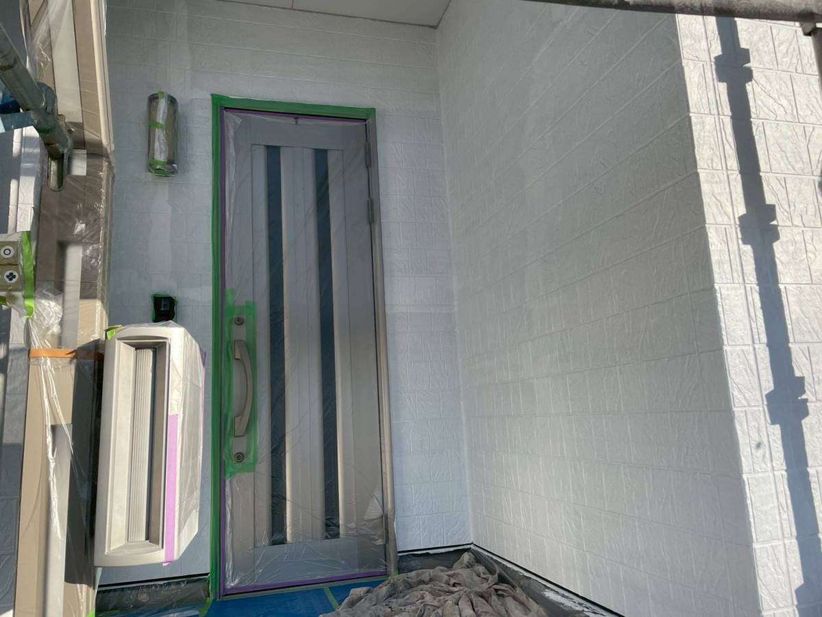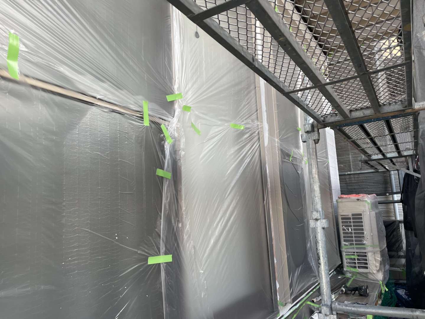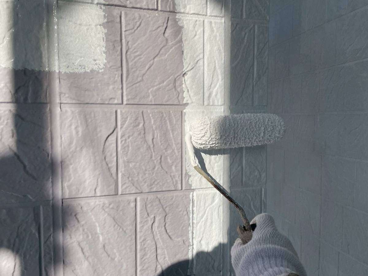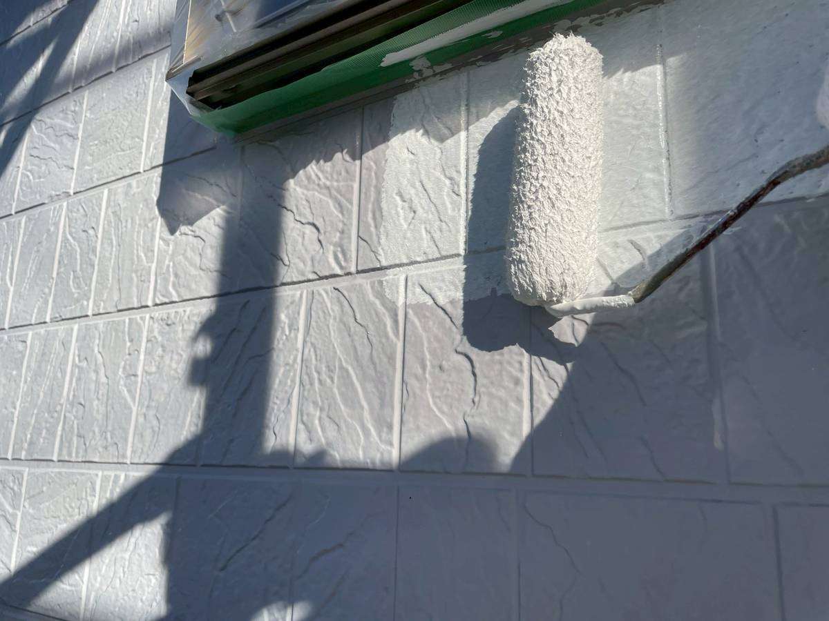 S様邸の昨日の作業は、養生作業・外壁の下塗り塗装作業を行っていました。