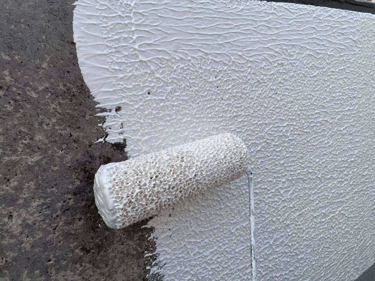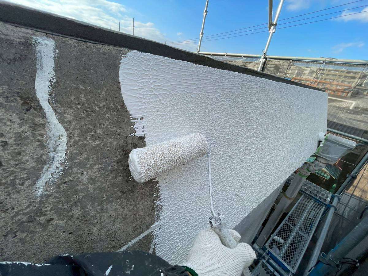 パラペット部下塗り塗装作業