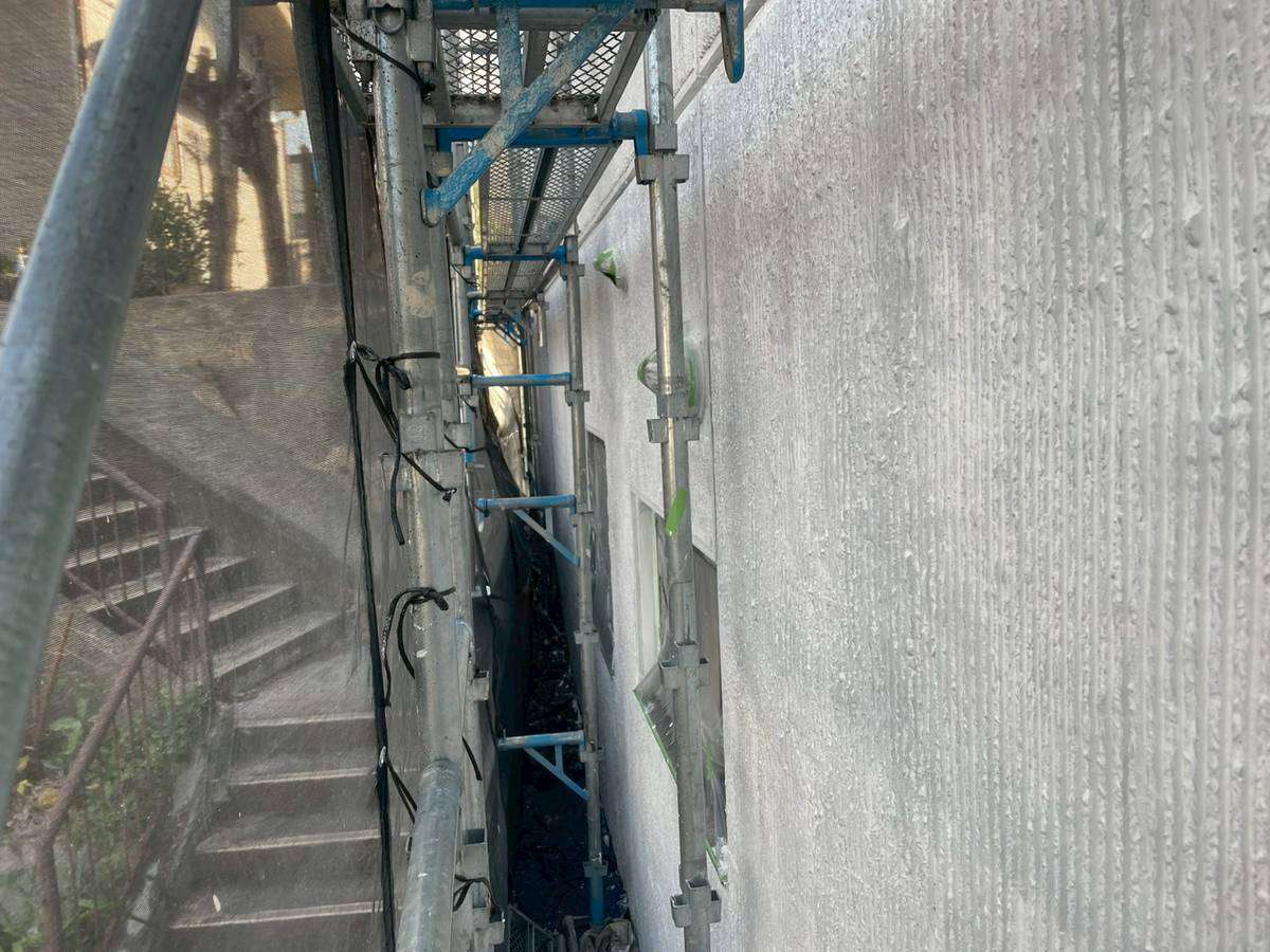 千種区Mマンション様の昨日の作業は、東西面外壁の下塗り塗装作業とパラペット部の下塗り塗装作業を行っています。