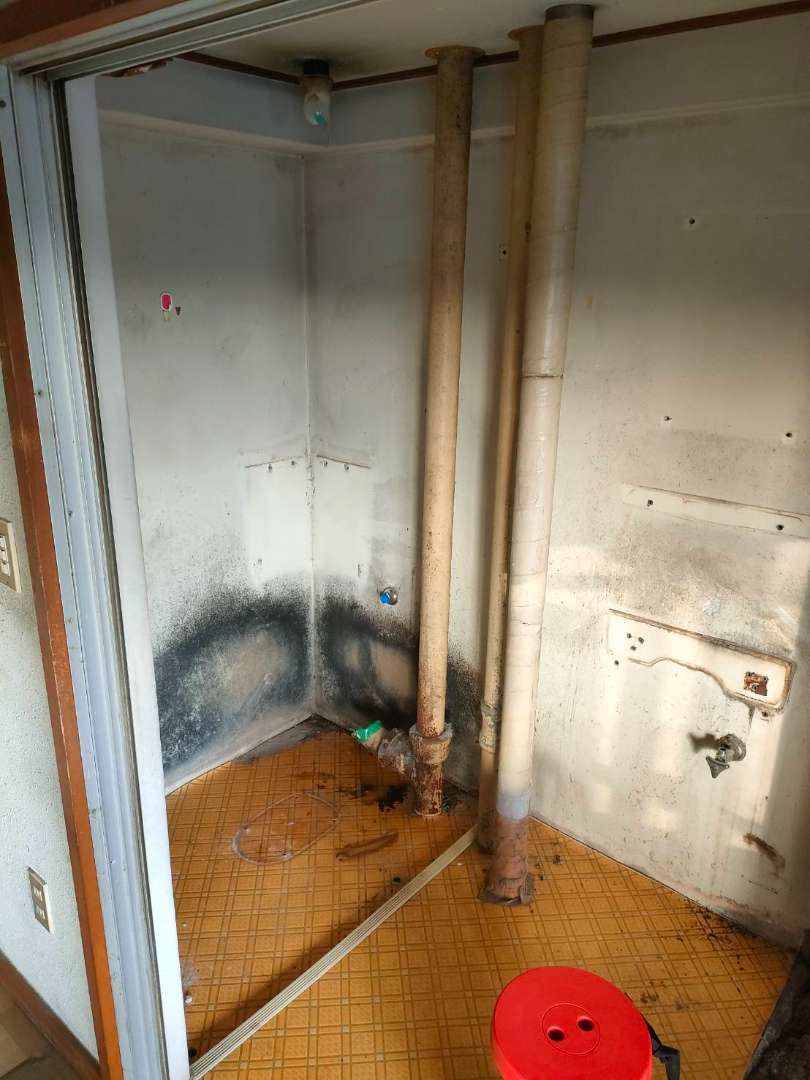 Fマンション様の作業は、キッチン・浴室浴槽・洗面台・浴室扉・トイレ・畳の撤去作業まで進んでいます。