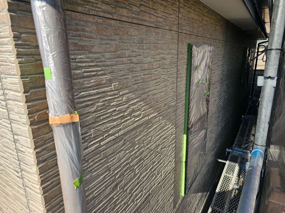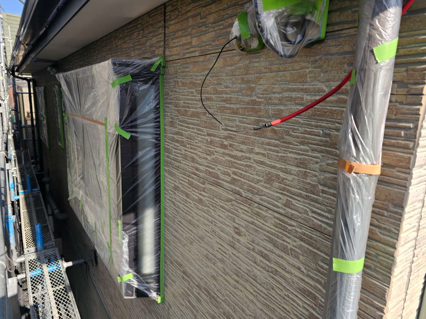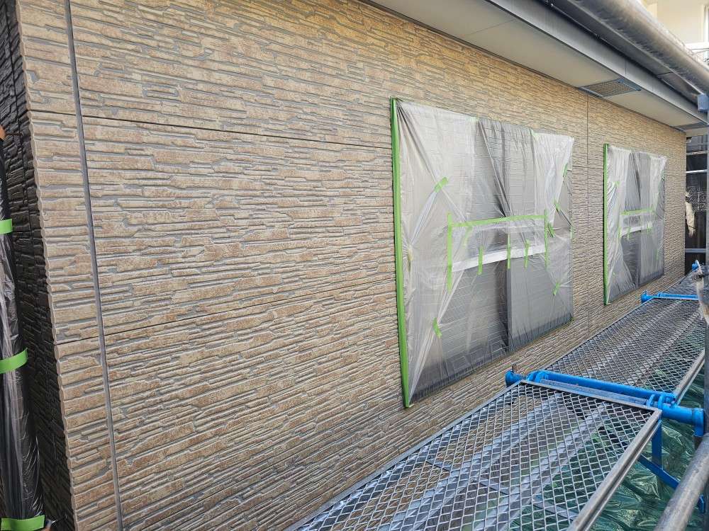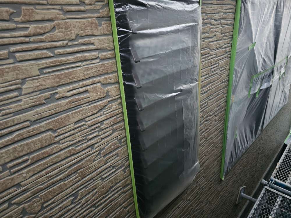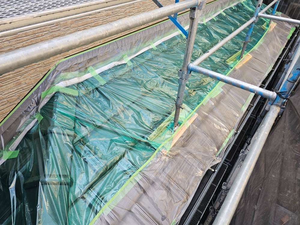 北区A様邸の昨日の作業は、非塗装部の養生作業を行っています。