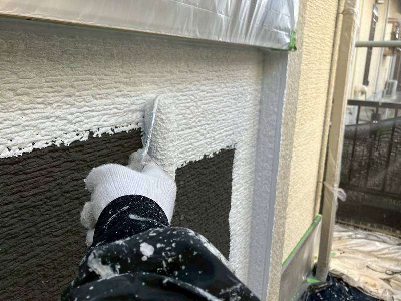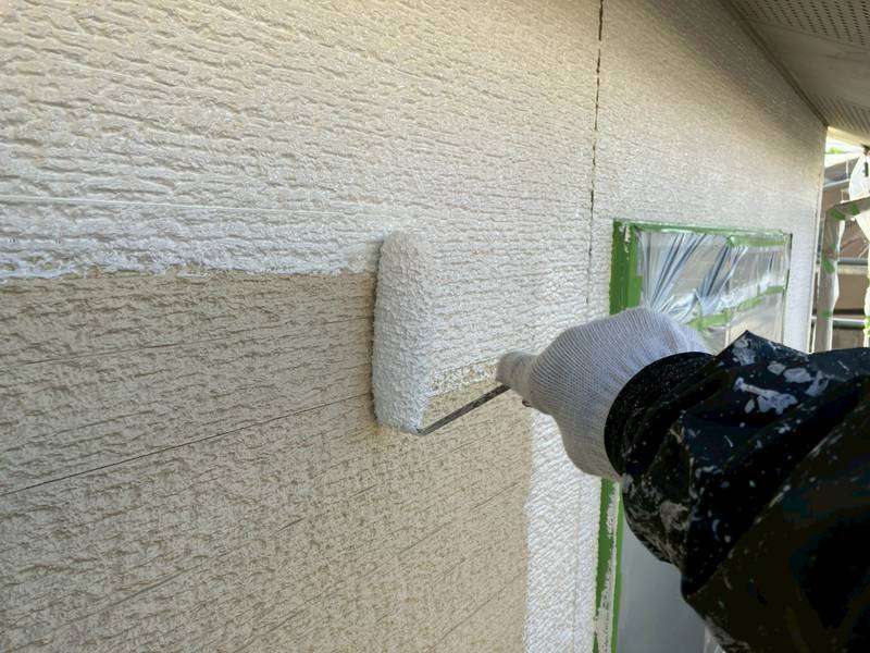 外壁の下塗り塗装作業