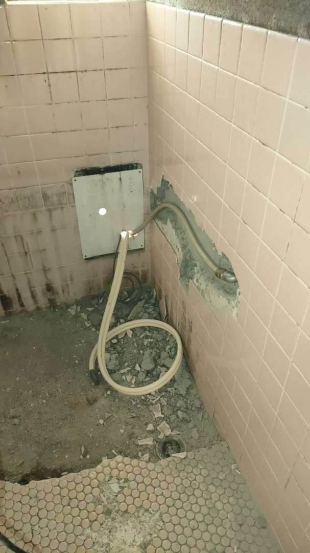 多治見市Fマンション様の昨日の作業は、浴室壁の斫り作業と北側洋室、廊下天井の下地造作作業を行っています。