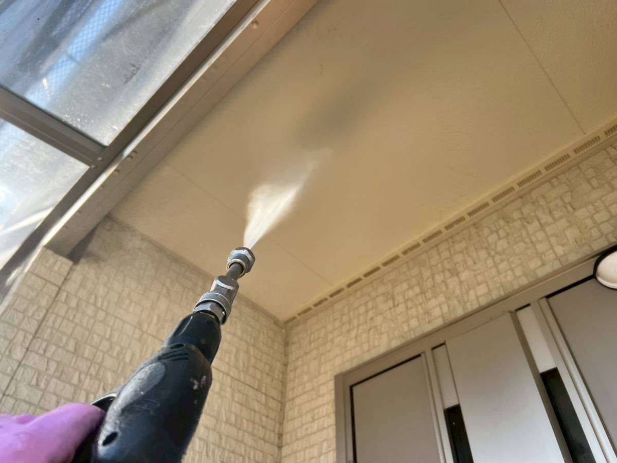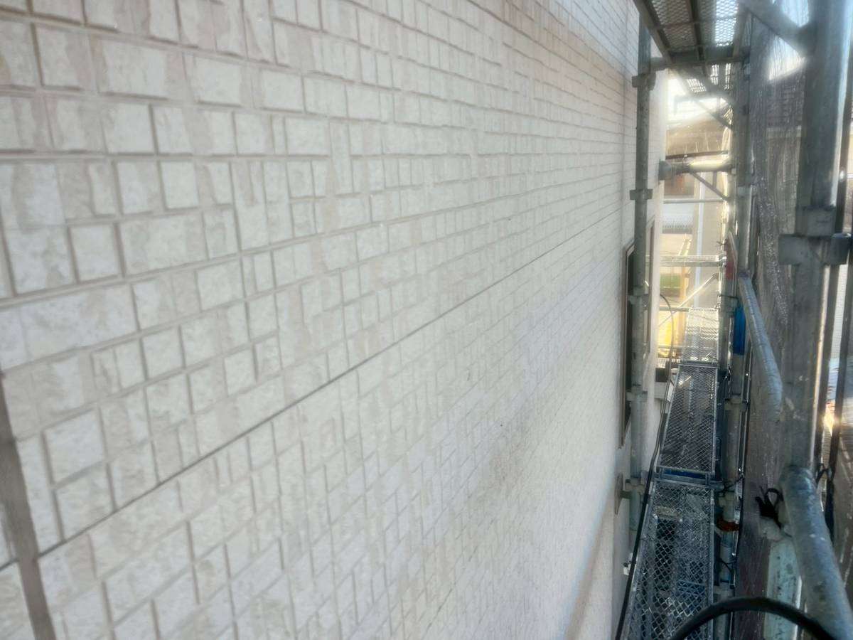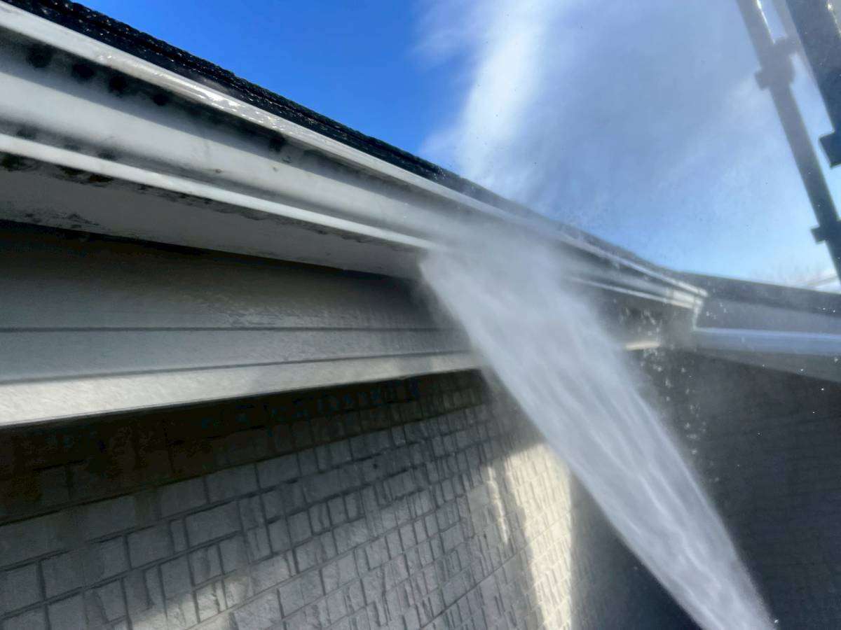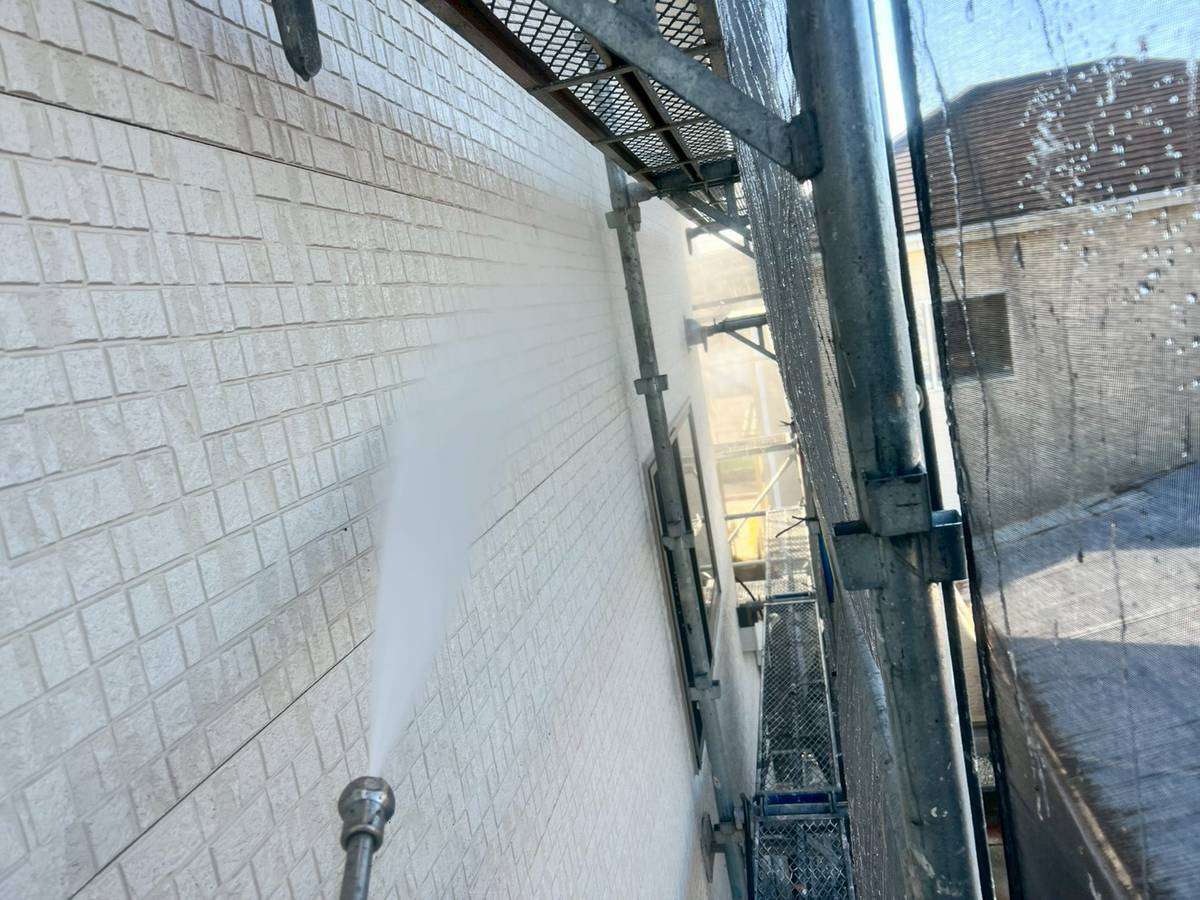 清須市K様邸の昨日の作業は、仮設足場設置後の外壁・屋根の高圧洗浄作業うを行っています。