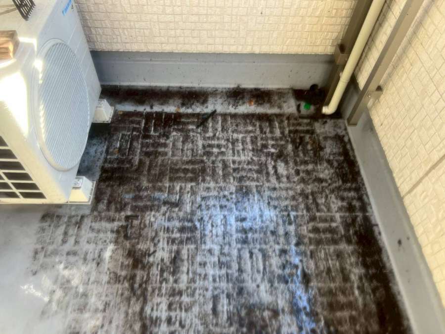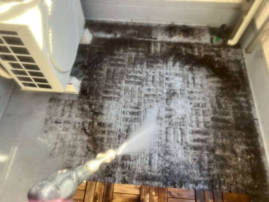 ベランダは、ルーフマットを外して洗浄しています。
