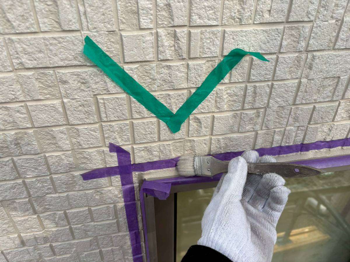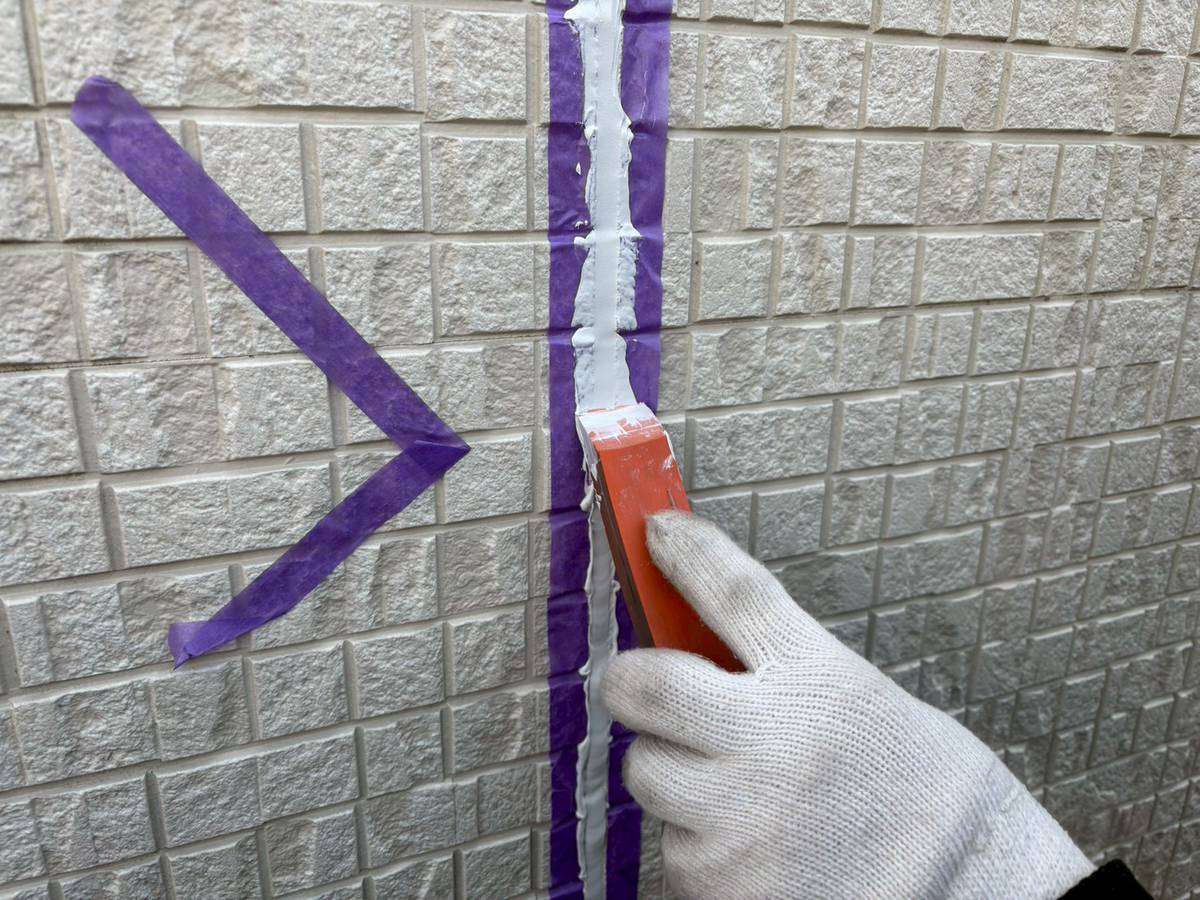 充填したシーリング材が乾燥した後に塗装作業を行います。