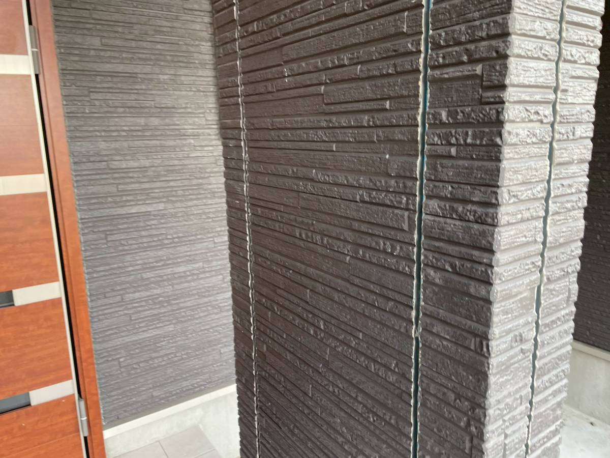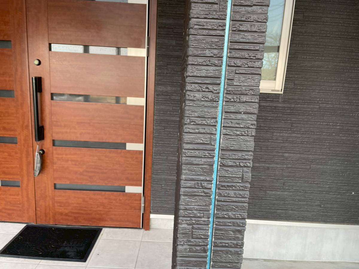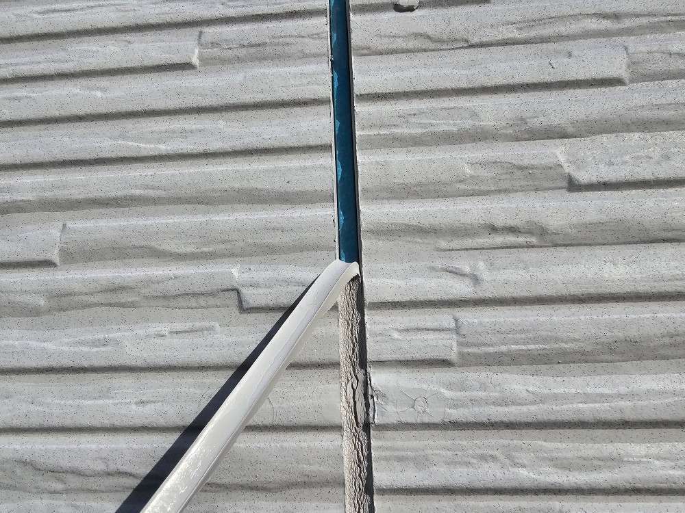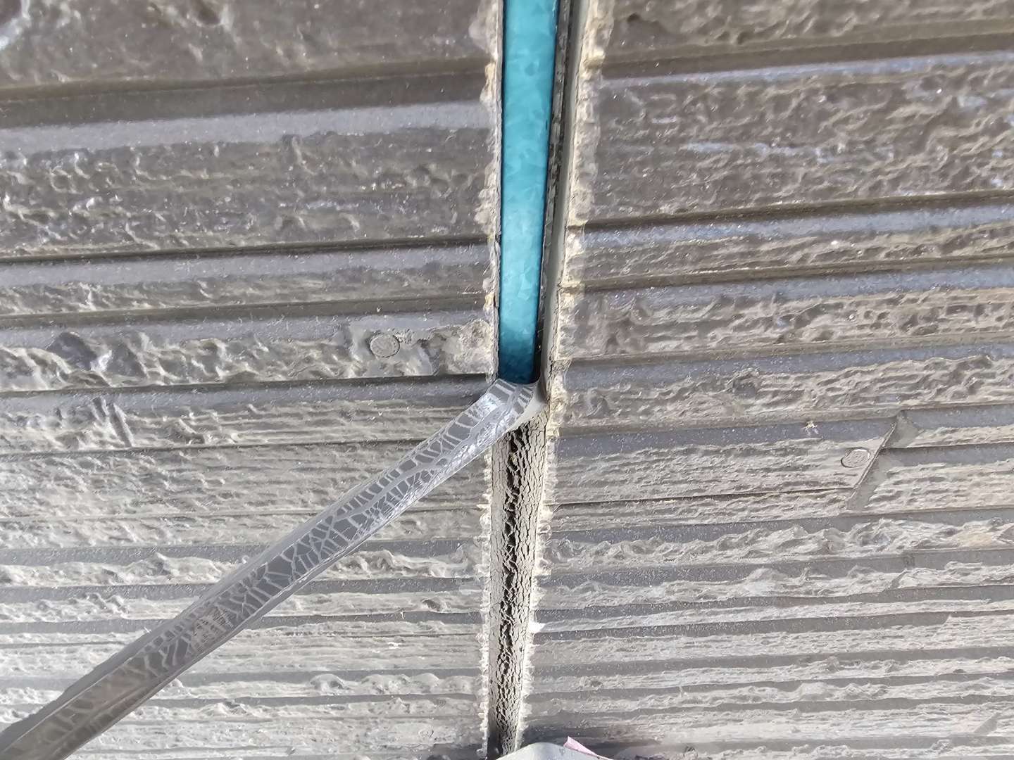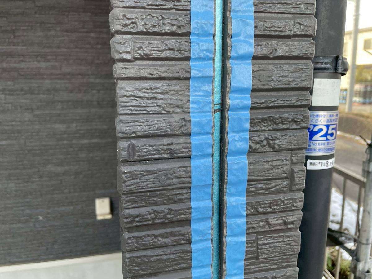 山県市Y様邸の昨日の作業は、外壁目地のコーキング(シーリング)打替え工事の旧シーリング材撤去作業とシーリング用テープ養生を行っています。