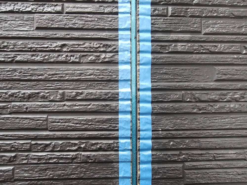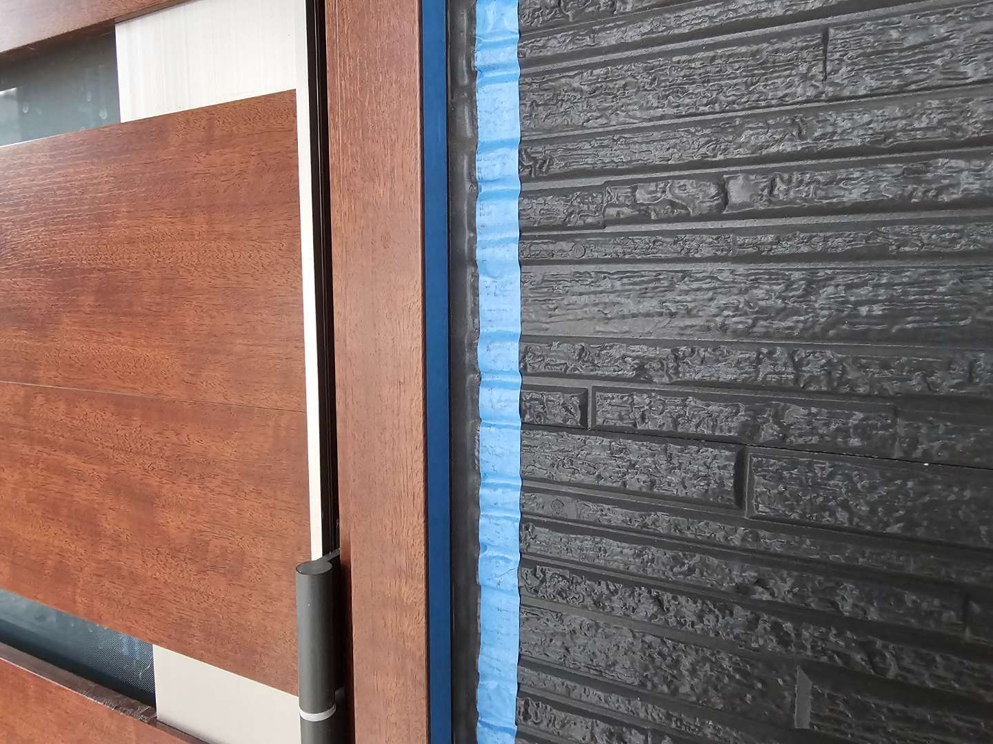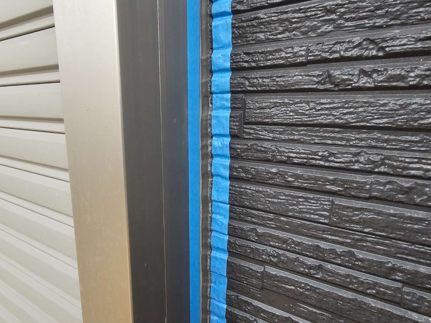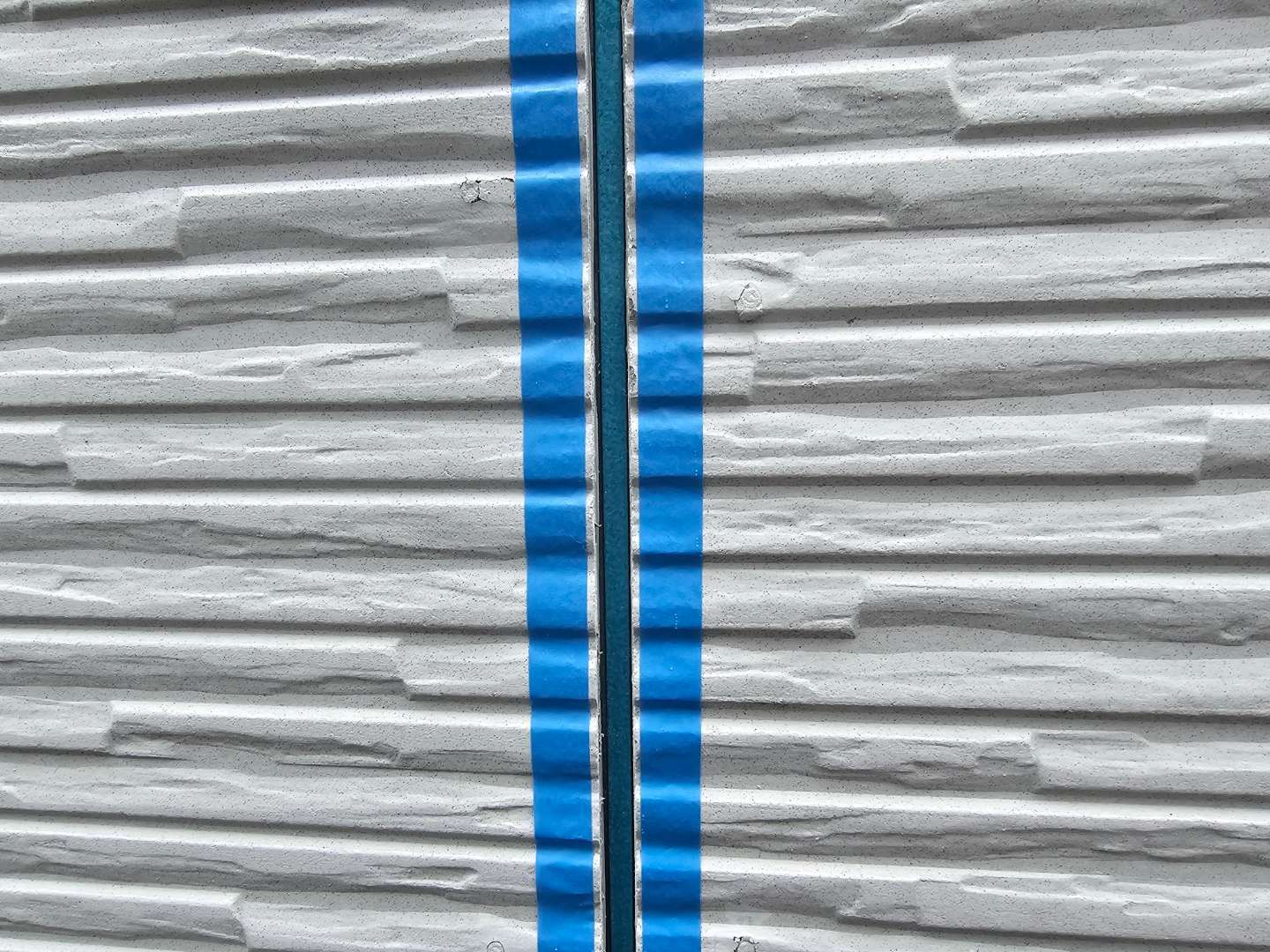 山県市Y様邸の昨日の作業は、外壁目地部のコーキング(シーリング)打替え・増し打ち工事のシーリング用テープ養生作業を行っています。