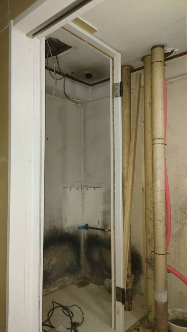 多治見市Fマンション様の昨日の作業は、洗面所入口扉設置、キッチンパネル設置、浴室下地造作配管設置、トイレ扉枠設置作業を行っています。
