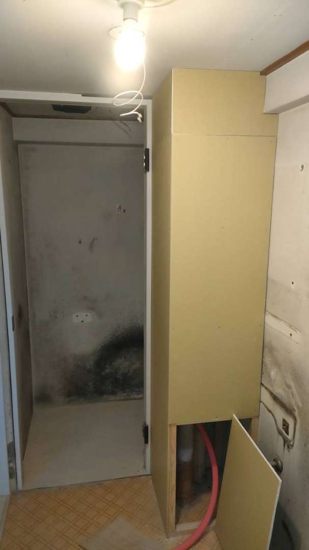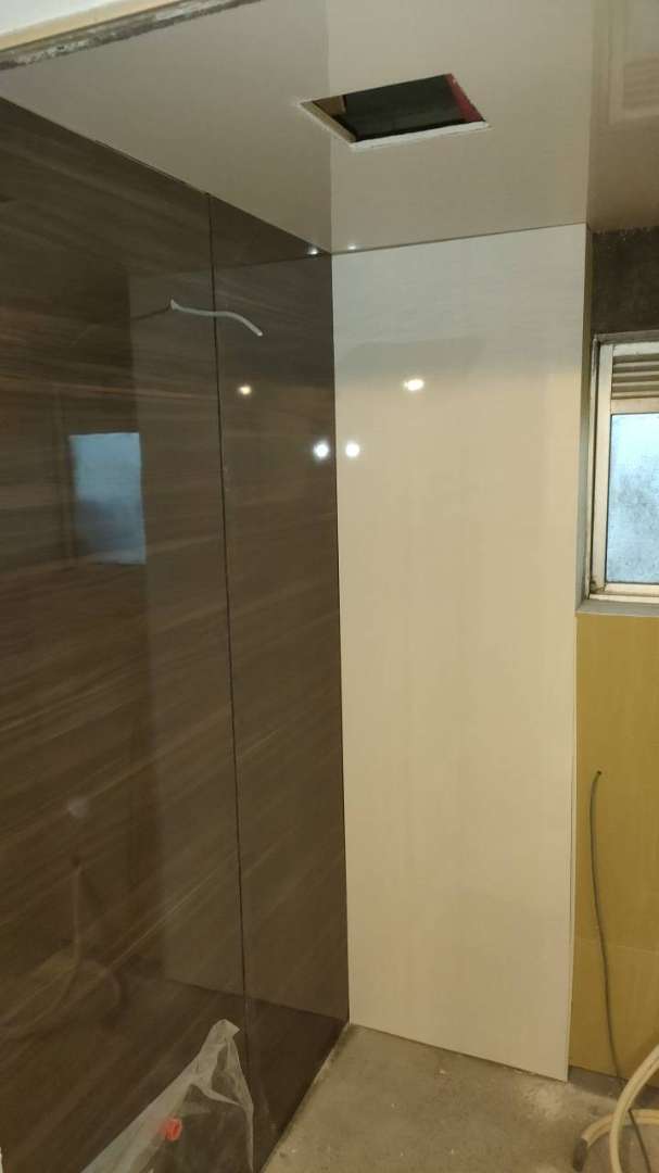 多治見市Fマンション様の昨日の作業は、浴室のバスパネル設置作業とトイレ壁造作作業を行っています。
