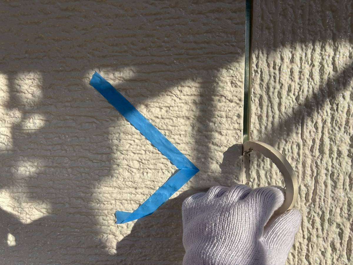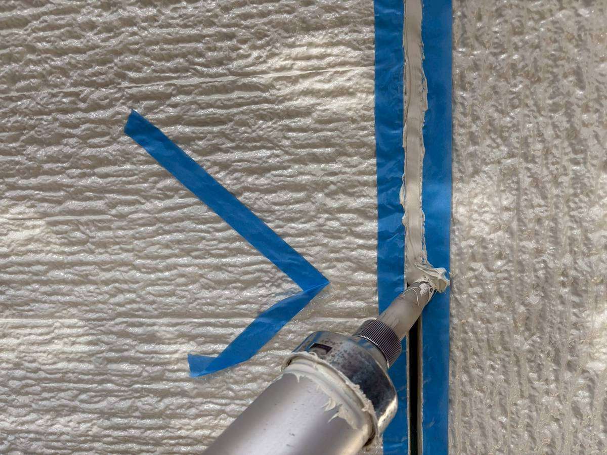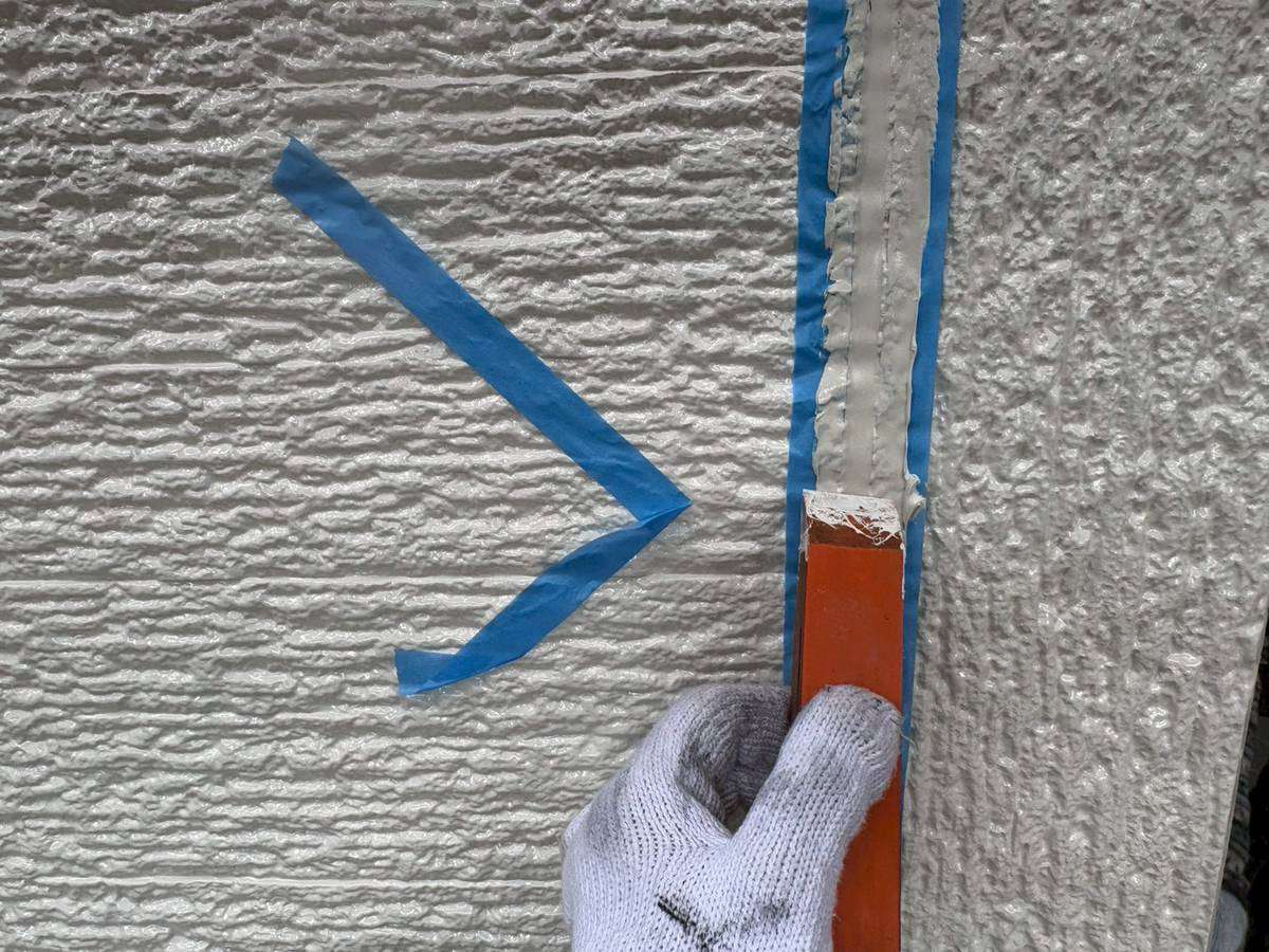 大垣市I様邸の昨日までの作業内容は、外壁目地部のコーキング(シーリング)打替え・増し打ち作業を行っています。